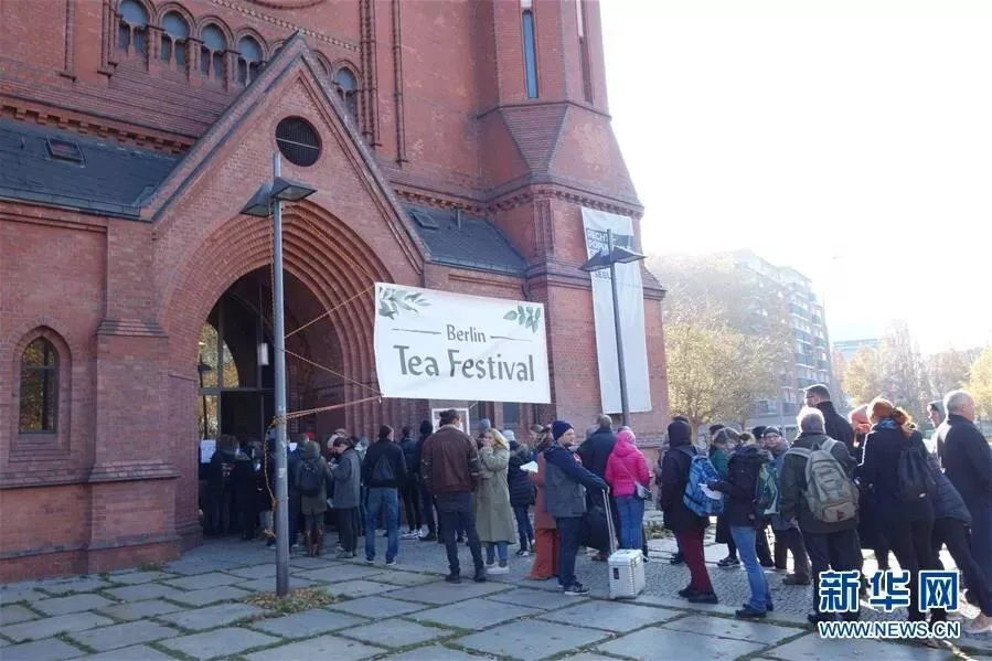 11月17日,在德国柏林,人们排队参加茶文化节。 当天,由几名德国茶文化爱好者主办的柏林首届茶文化节在当地一个由教堂改建的文化活动场馆内举行。这是一场茶的视听盛宴,茶品展览、茶艺研讨、茶道与冥想、书画与茶、太极与茶、茶与琵琶等以茶为主题的活动陆续展开。主办方说,共有2000余人参与了此次活动。