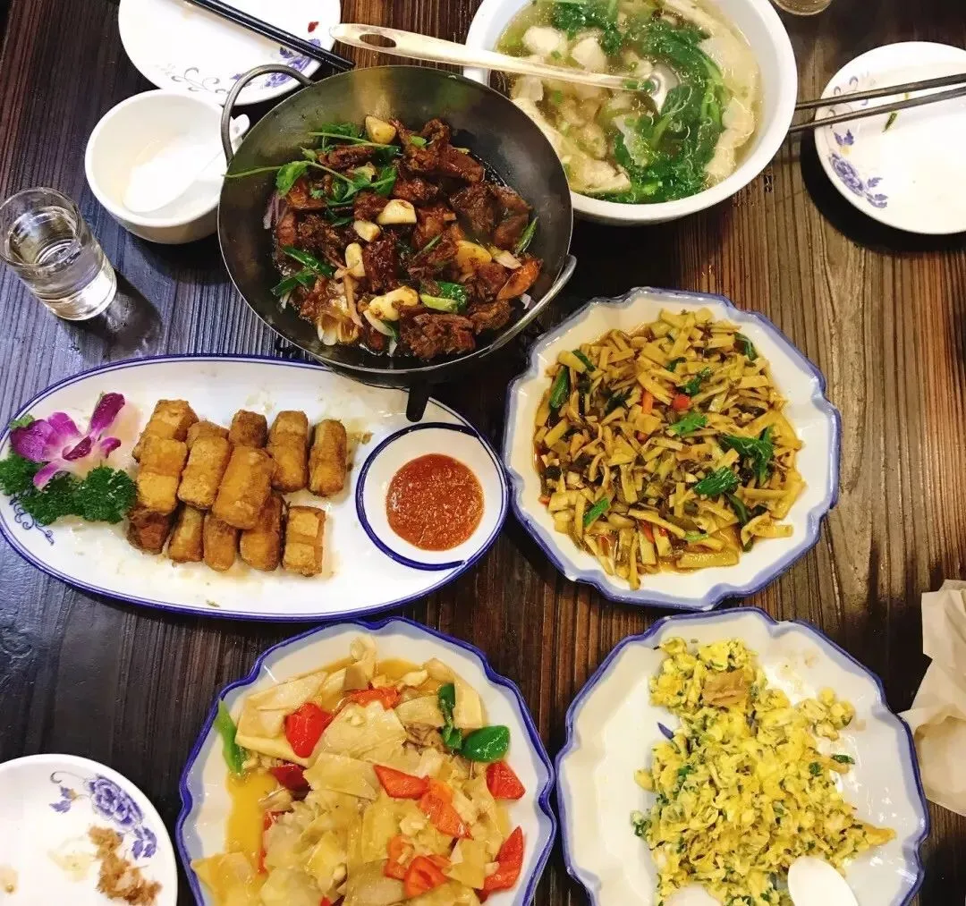 徽菜的“盐重好色”,在这里也体现的淋漓尽致。每一种菜,都集合了很多种颜色,看上去就很有食欲。虽然都说徽菜不如江浙菜精致,但这个“色”,并不见得会逊色噢~