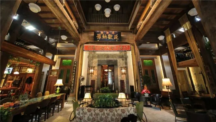 院内四周种植了各类名木古树,青竹芭蕉、假山活水,使整个院子充满了生机。雕刻精美的古石雕与徽州盆景随意散落在院中各个角落,看似无意,实则有心,处处透着古徽州园林的讲究。