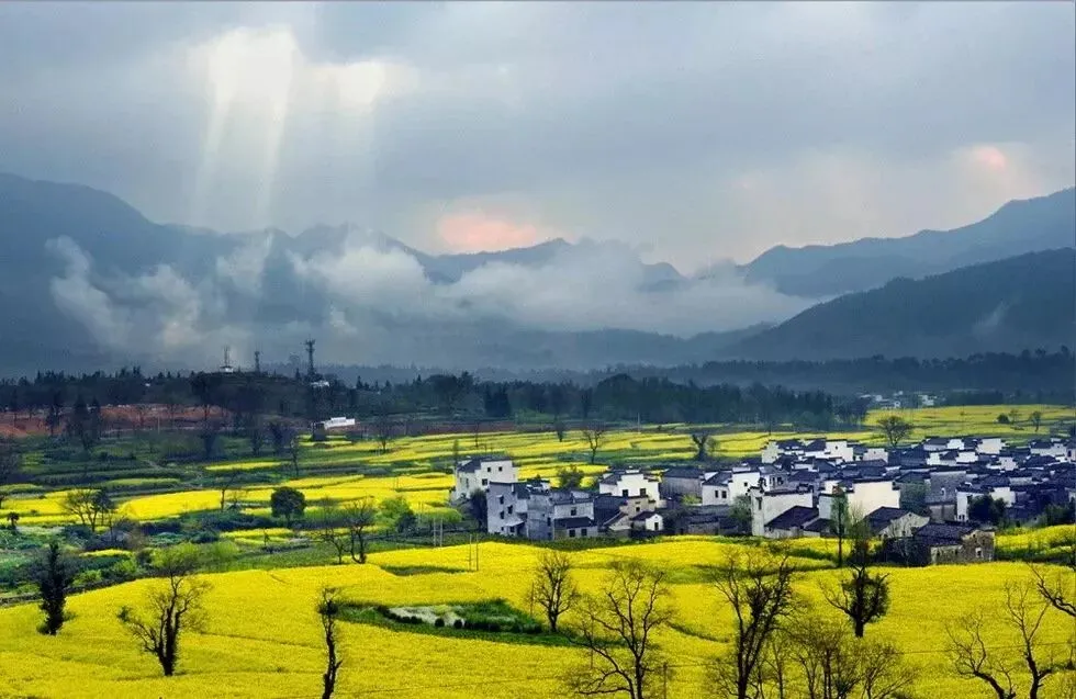 这里有保存完好的古村落,有挂在门口的腊味,有金黄的油菜花田,有典型的徽派建筑,有秋天最美的样子 。