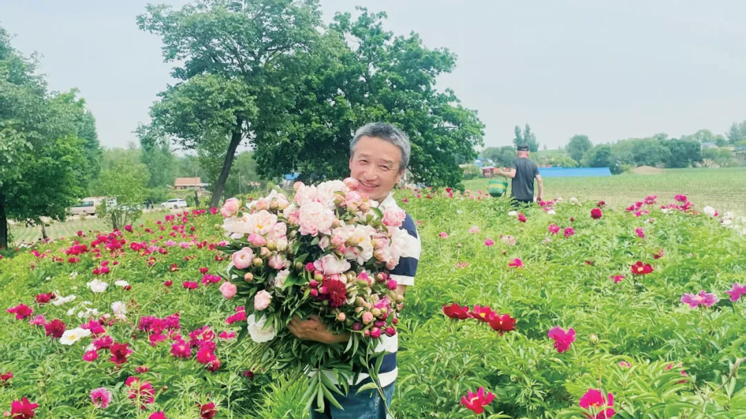 村民手捧色彩缤纷的赤芍花束,脸上洋溢着丰收的喜悦(徐晖/摄)
