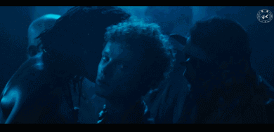 演员正在舞池嗨,此时,场外出现了一个蒙面男,两人眼神对视。