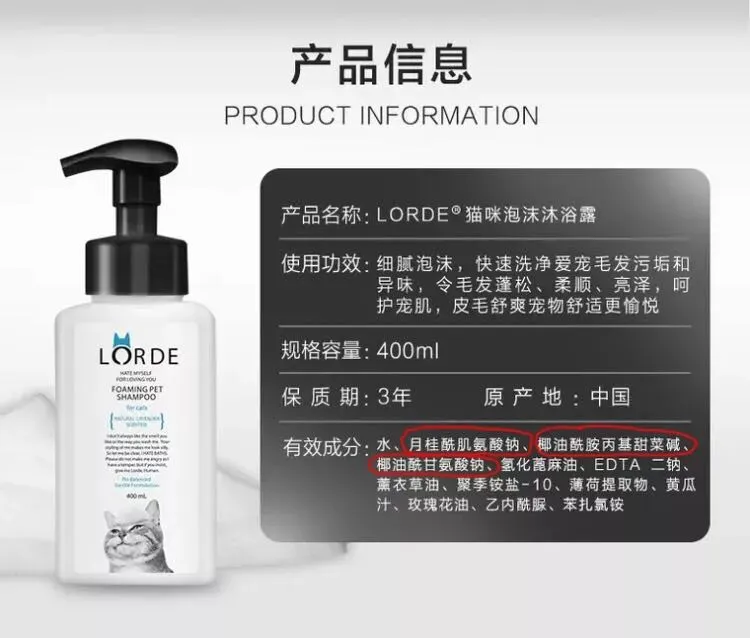 OK!我们来看看这款LORDE猫咪氨基酸沐浴露的成分到底怎么样?