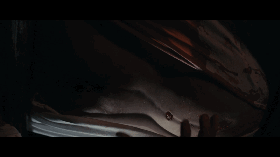 于是,剧情很快跟进交代,A男幻见了鲜血淋漓的床单之下有魔胎逼近他的景象,