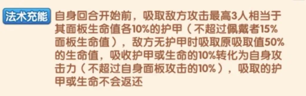 ◆ 吸取敌方三个最高攻击单位10%的护甲;