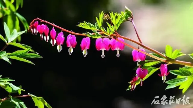 另外,为满足游客的欣赏需求,今年新栽植了荷包牡丹,其花朵奇特,花色娇艳,犹如小荷包似的悬垂在枝头,倩丽优雅,再加上其叶片颇似牡丹叶片,因而受到人们的关注和喜爱,在我国有着一千多年的栽培历史。目前荷包牡丹也正值花期,长长的花序,整齐地缀着大大小小的粉色爱心,非常可爱。