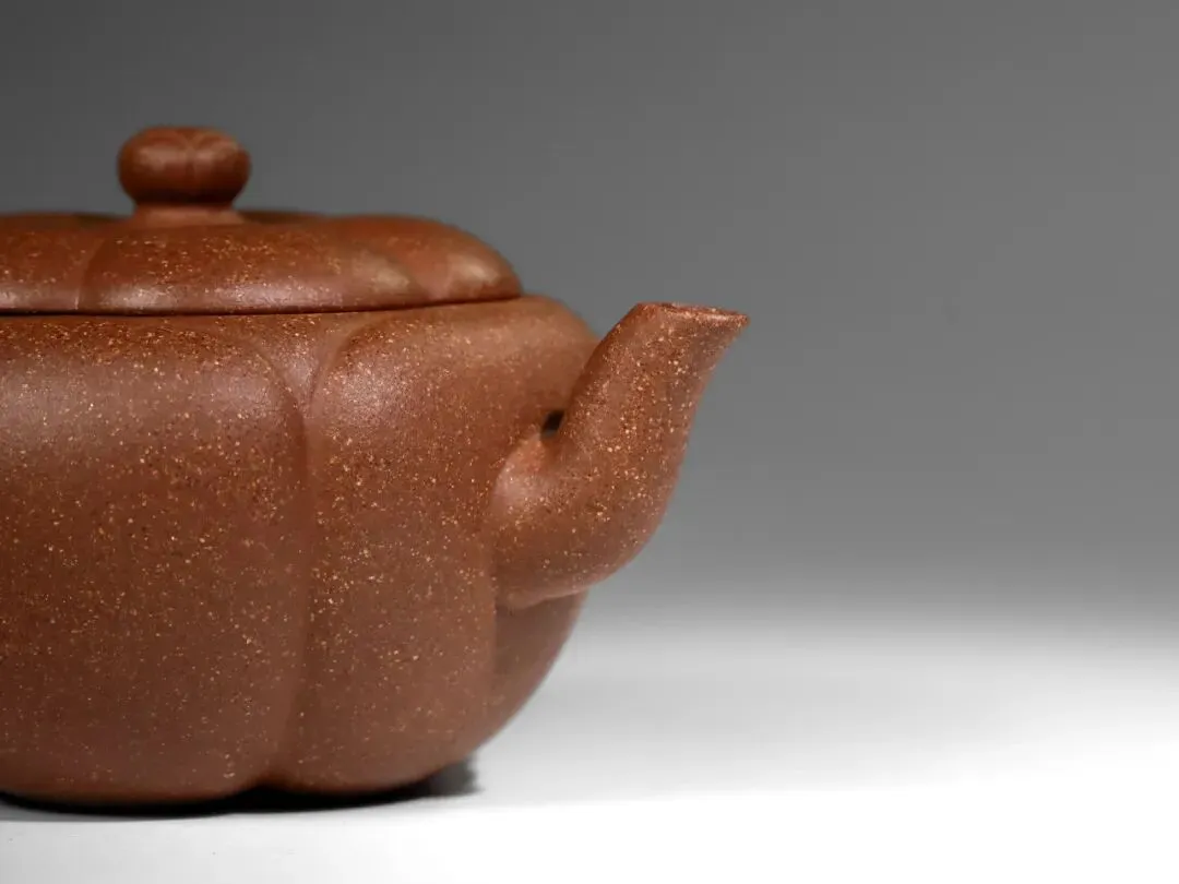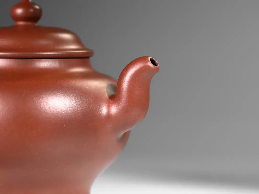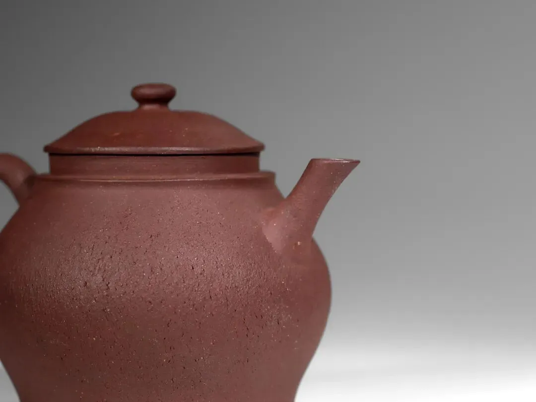 全手工制作,附作品收藏证书。汲古壶,以手为器,以心驭泥,在舍弃一切现代工巧的朴素实践中,直抵紫砂本质的“枯槁之美”。严冬琴女士此作,不仅是技艺的呈现,更是一场关于修心与格物的精神修行,其背后承载着吴志强先生近乎严苛的艺术追求。壶取珍稀手磨红皮龙为料,泥质粗粝,砂粒峥嵘。这种未经过度修饰的原矿质感,保留了紫砂最本真的呼吸,旨在最大程度提升茶汤的味觉审美,践行“器为茶生”的古朴理念。此作最震撼处,在于其极致苛刻的成型方式。全器不借助繁复工具,不施明针修饰,不经后期整口,仅凭双手在泥料最富活性的6分钟内一气呵成。这要求作者对泥性的干湿、砂粒的分布、成型的力道拥有刻入骨髓的感知与掌控。正因如此,其成品率低至十不存一,每一次成功都是泥、火、人、天四者机缘的和鸣。严冬琴女士以此壶诠释了何为“技进乎道”。快速的成型并非草率,而是对材料活性极限的尊重;粗犷的肌理并非简陋,而是对紫砂本质的忠诚追溯。这背后,是降低物质欲望后对精神世界的专注求索,是经历万千失败后将技法化为本能的心手合一。