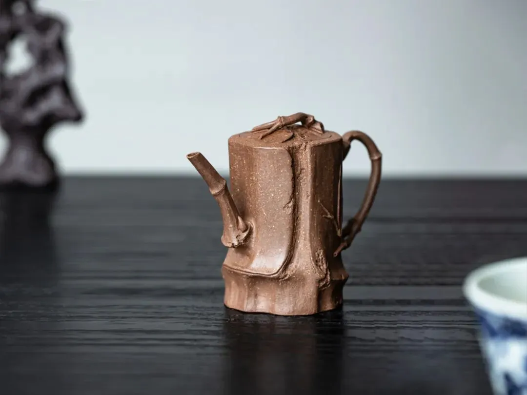 全手工制作,附作品收藏证书。凛风壶,以老段泥为骨,以枯竹为魂,在紫砂花器领域中开辟了一条通往自然本真的野径。林明斗先生此作,摒弃了对完美工整的执着,转而在枯竹的斑驳与风骨中,追寻万物生长的原始力量与生命轮回的深刻哲思。壶取老段泥为胎,泥色苍古,砂粒粗粝。作者有意未施过度明针,保留了泥料自在呼吸的肌理,使壶身呈现出枯竹褪皮后特有的斑驳质感与沧桑触感,仿佛能触碰到时光啃噬的痕迹。此作之魂,在于对“枯荣共生”的极致刻画。壶身塑作一截虬曲苍劲的枯竹,残存的竹节、翘起的韧皮、甚至被风蚀的叶痕,皆以近乎写实的雕塑语言呈现,凝固了风雪洗礼后的铮铮风骨。壶嘴顺竹势胥出,线条蕴藏着不屈的韧性。尤为精妙的是,作者于壶身一侧,贴塑一枚破皮而出的小嫩芽,以一抹鲜活的生机,与整体的苍茫形成强烈对话,瞬间点破“生命循环不息”的主题。林明斗师从跨界大家薛峰教授,得其突破窠臼、尊重本真之精神内核。此壶正是这一理念的完美实践——它不追求对称工整的程式美,而是以精湛的“硬功”去还原自然物象最真实、最动人的瞬间状态。这不仅仅是一把壶,更是一件引人沉思的微型雕塑,让人在枯与荣、残破与新生的对照中,窥见自然最深沉的诗意与力量。