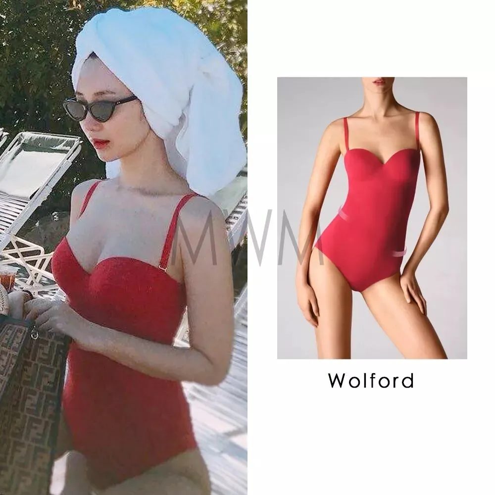 钟楚曦还穿过一款80年代复古风的运动泳装,也很特别。
