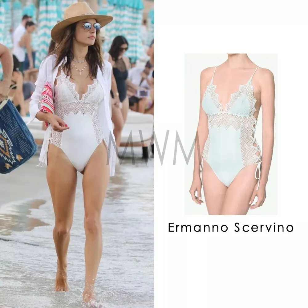 Alessandra Ambrosio 选的是白色深V镂空设计,也是起到好处的性感。