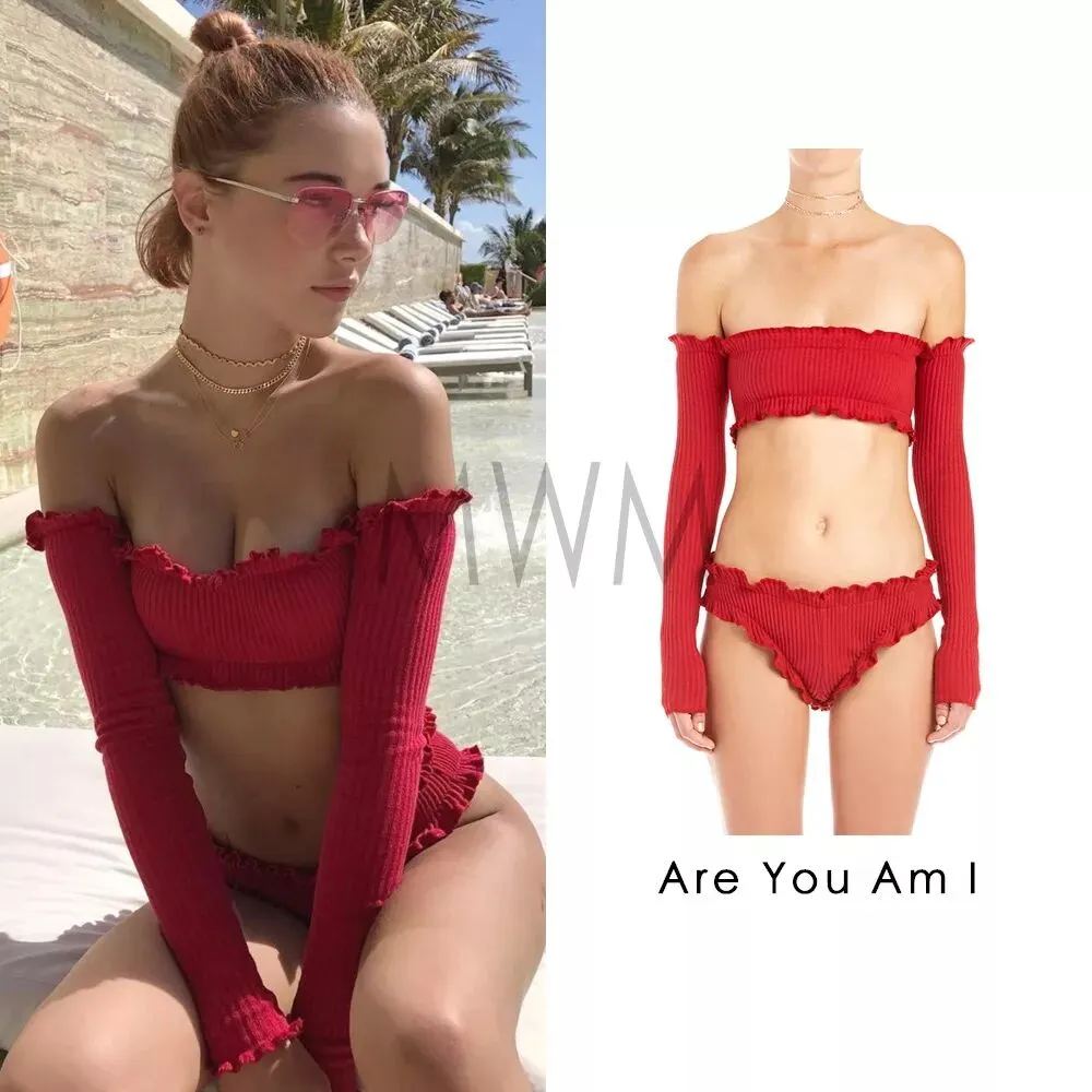 像Are You Am I 的这一套红色泳衣就很适合在沙滩上玩,自带防晒袖,下水可能不是很方便啦,但是拍照绝对是一流。