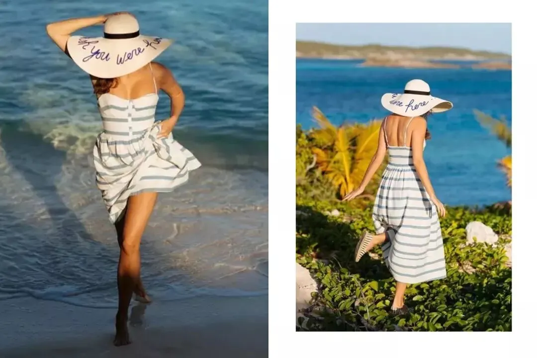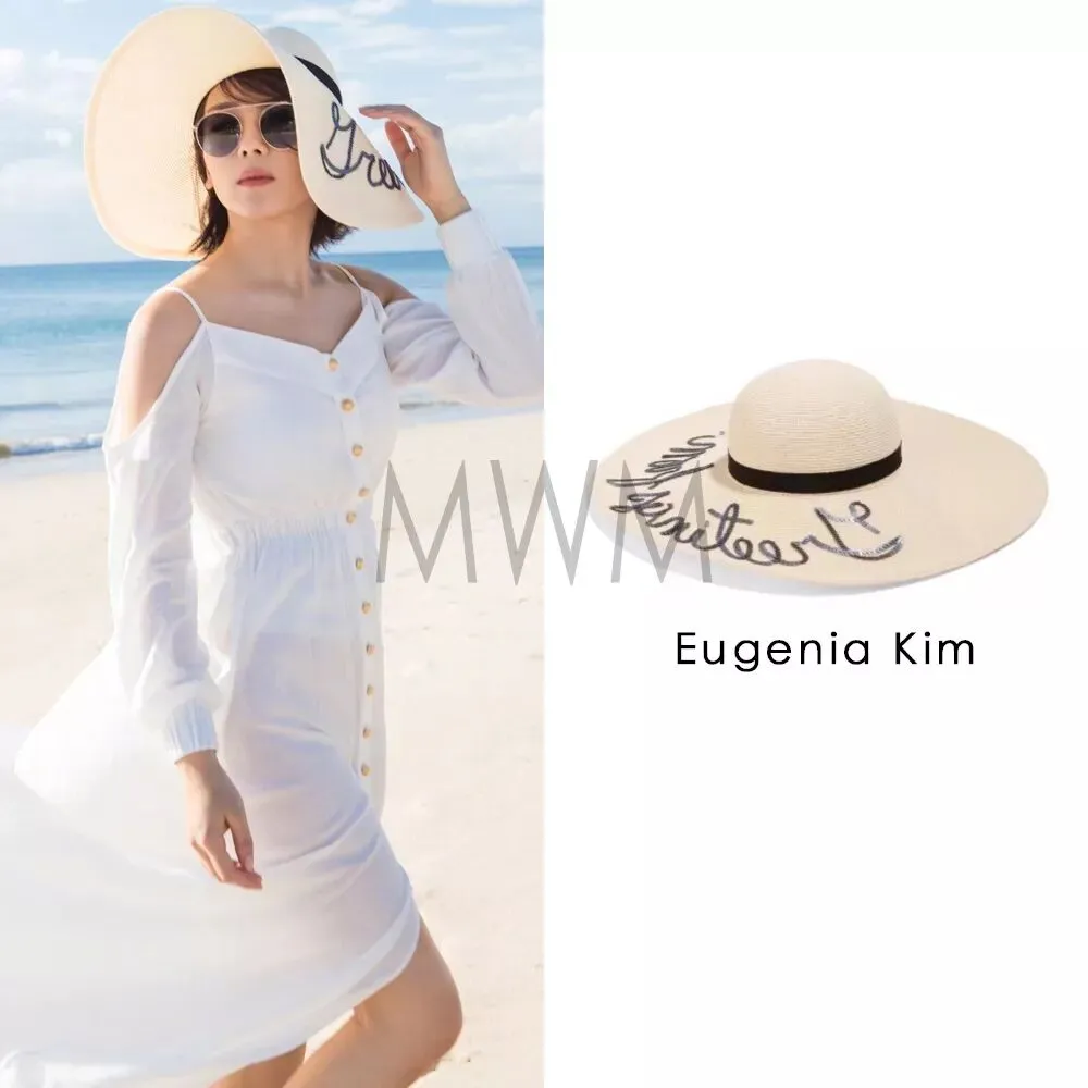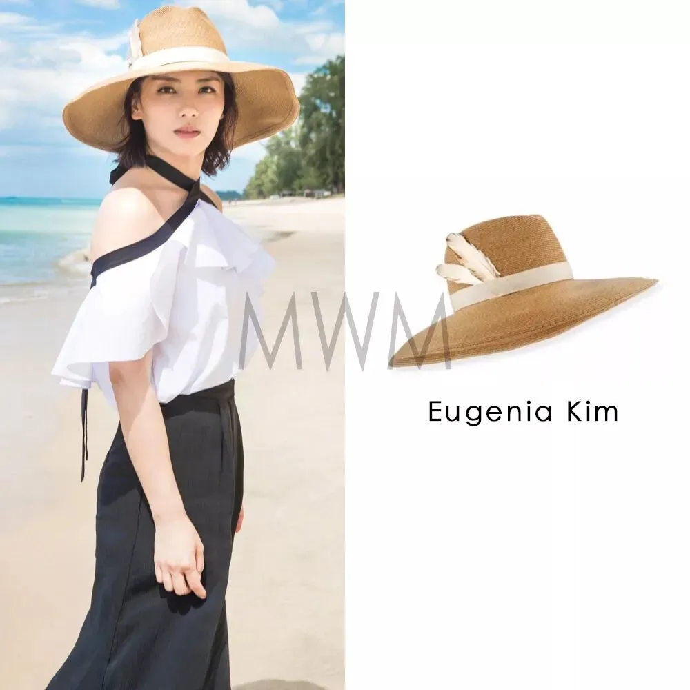 她戴的草帽就是现在最红的Eugenia Kim,号称是帽子界的爱马仕。这是一个纽约设计师品牌,一开始还是挺小众的,无奈太好看,这两年就成了海边当家花旦。时尚博主只要去到海边,就一定要上下左右各拍一张,脸都可以不露,但是帽子一定要露。