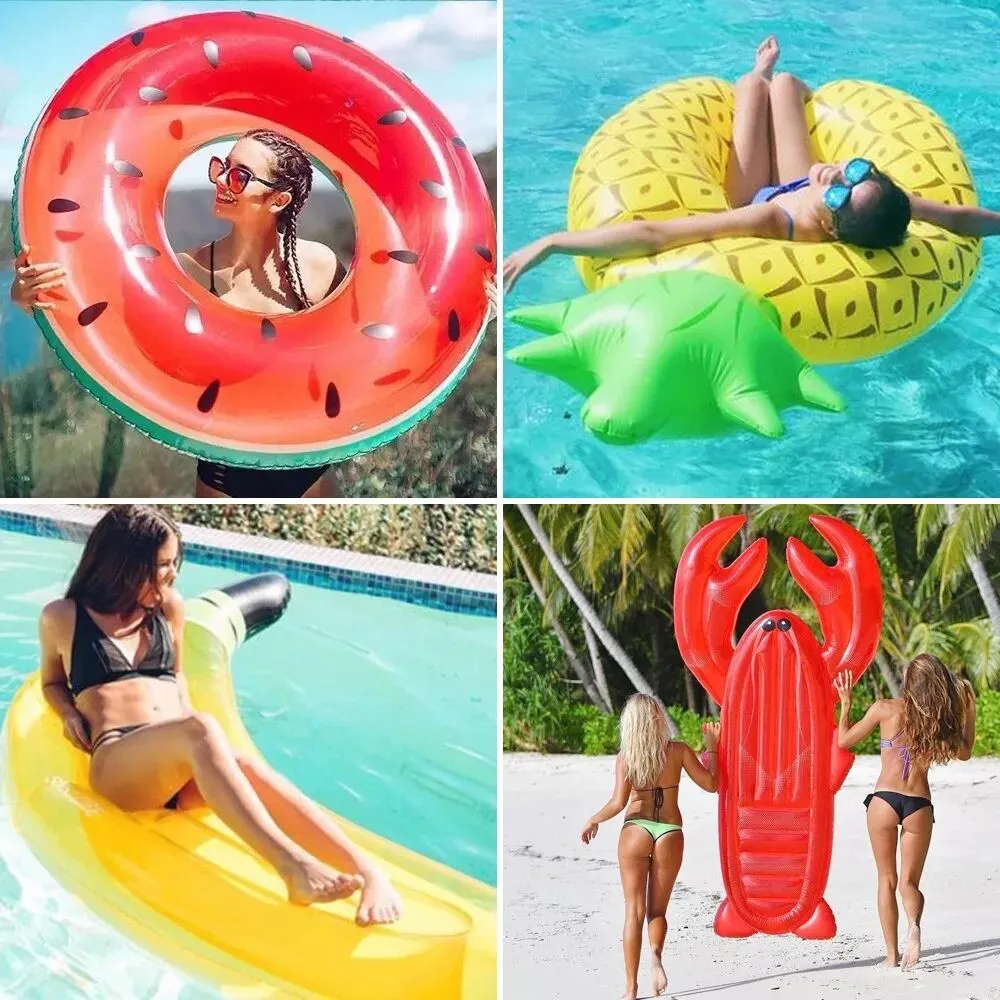 各种水果的游泳圈非常有夏天的感觉,西瓜啦、菠萝啦、香蕉啦,或者带一只大龙虾也不错。