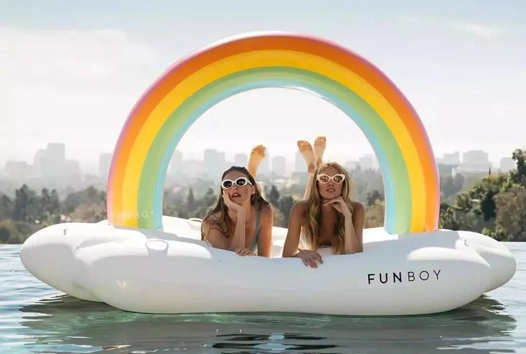 FUNBOY的设计很有梦幻的少女心,像是浮在海面上的云端彩虹,光是听着就很浪漫了,而且体积很大,两三个女孩子躺在上面都是可以的。