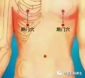 【方法】用左右手的食指或者中指,分别轻轻按住肝经的左右期门穴,快速振颤,每分钟振颤120 ~ 150 次,连续振颤3 ~ 5 分钟。