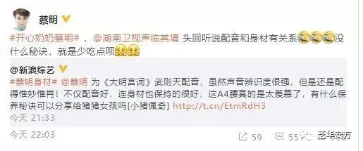 网友马上跑到蔡明的微博留言问她是怎么保养的,随后蔡明身材还上了热搜。蔡明本人看到,回应说其实没有什么秘诀,就是少吃点。哈哈哈哈,果然胖都是管不住嘴的祸。