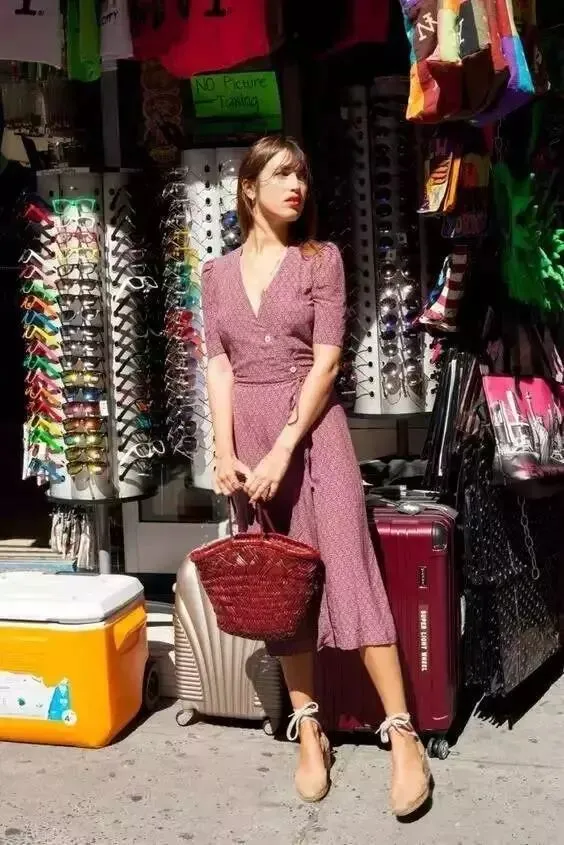 尽量选择浅色系或者和连衣裙色系相同的来呼应。