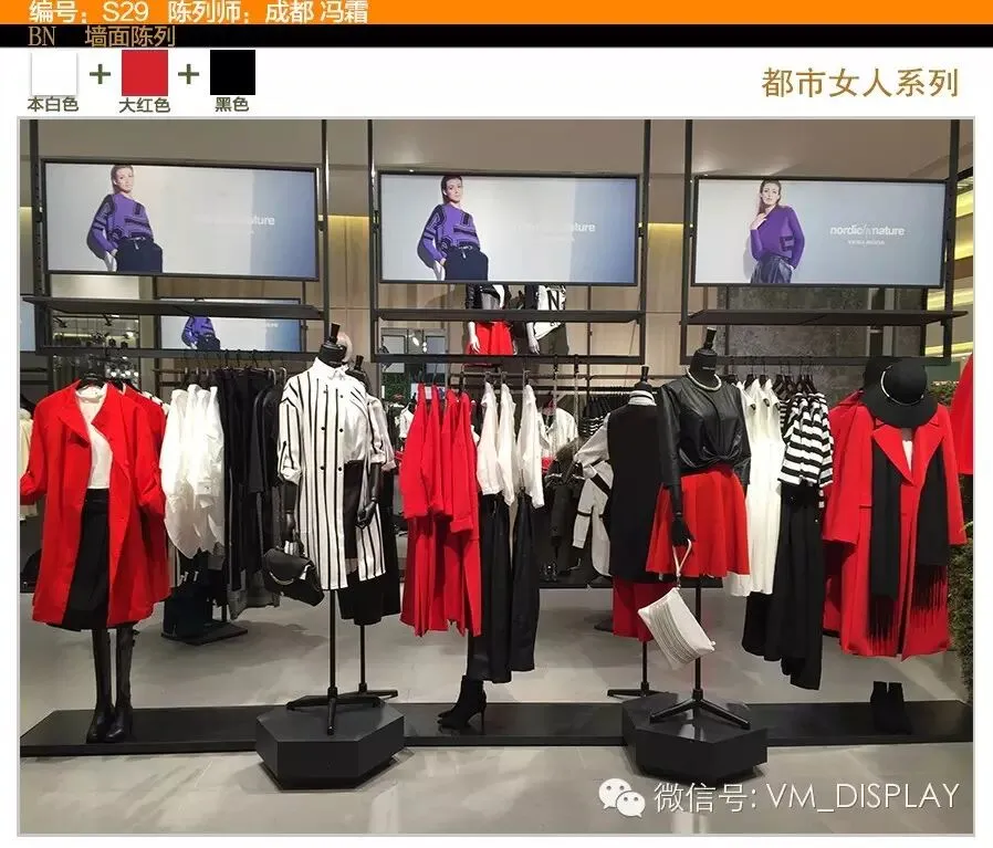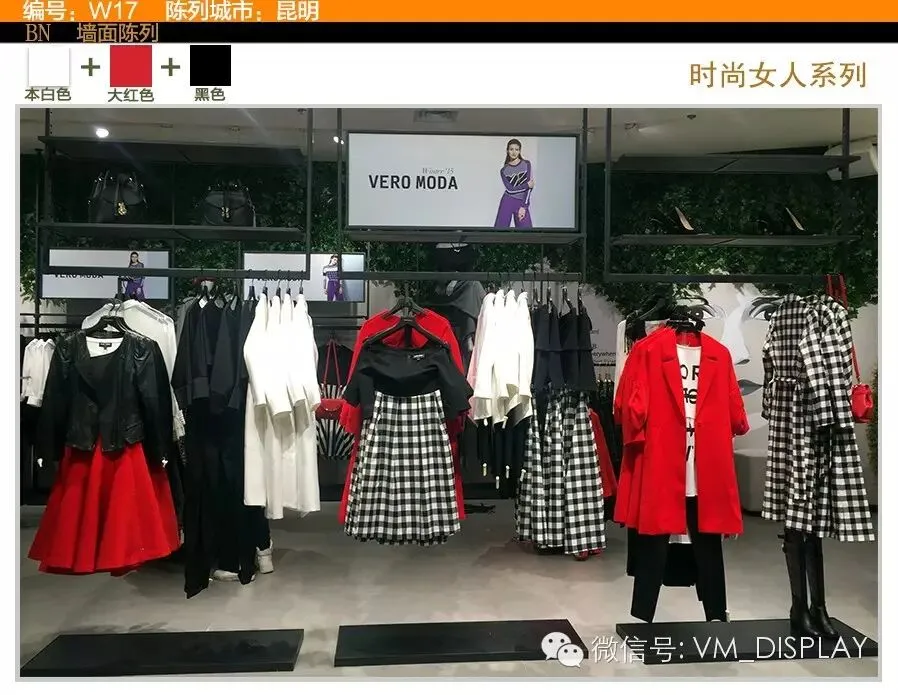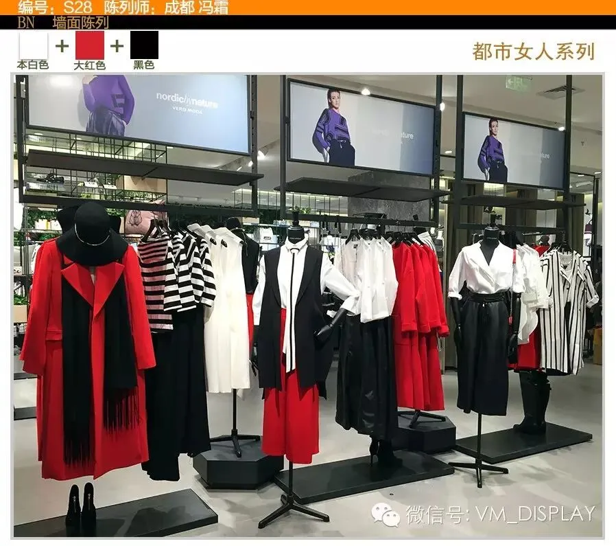 大红色外套内搭选择白色比较清新邻家,喜庆之余又不会显得过于强势,是比较容易让人亲近的色彩搭配。其实外红内白还是外白内红都没有太大关系,反倒是鞋子选择时尚度高一些会让整个造型变得更加有个性。相对于与格纹搭配,细条纹与红色搭配组合看上去更现代时尚一些,陈列师在配饰项链和包包上讲究简洁精致的式样来辅助。