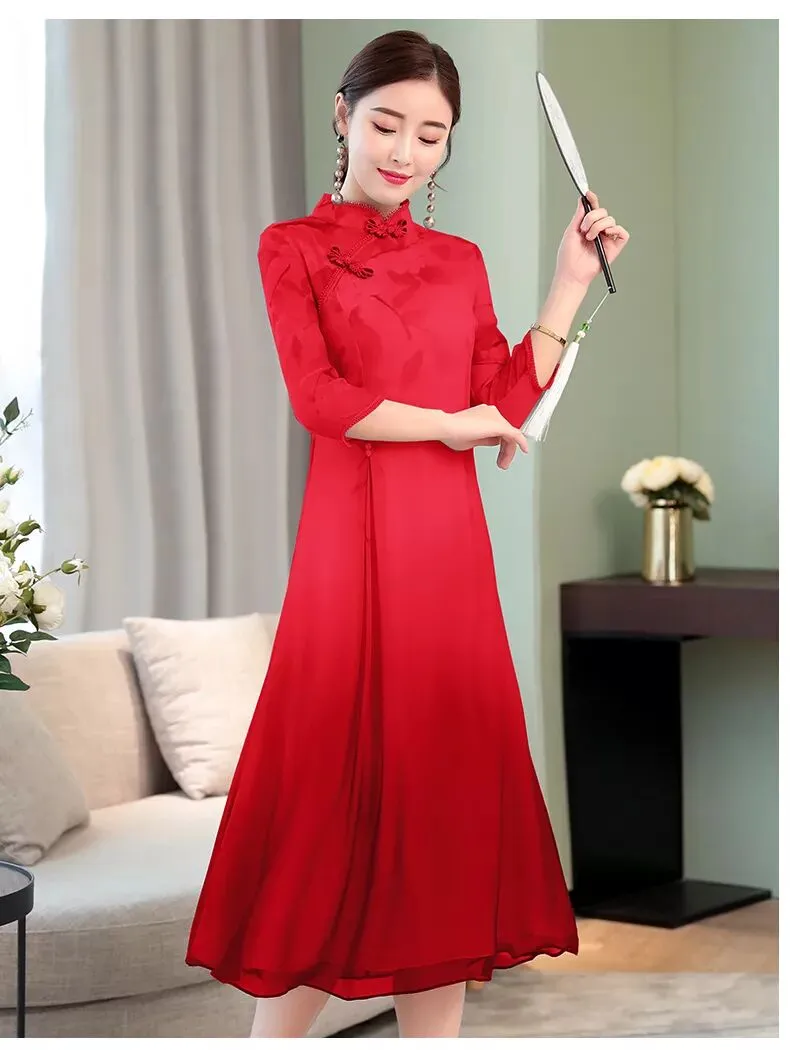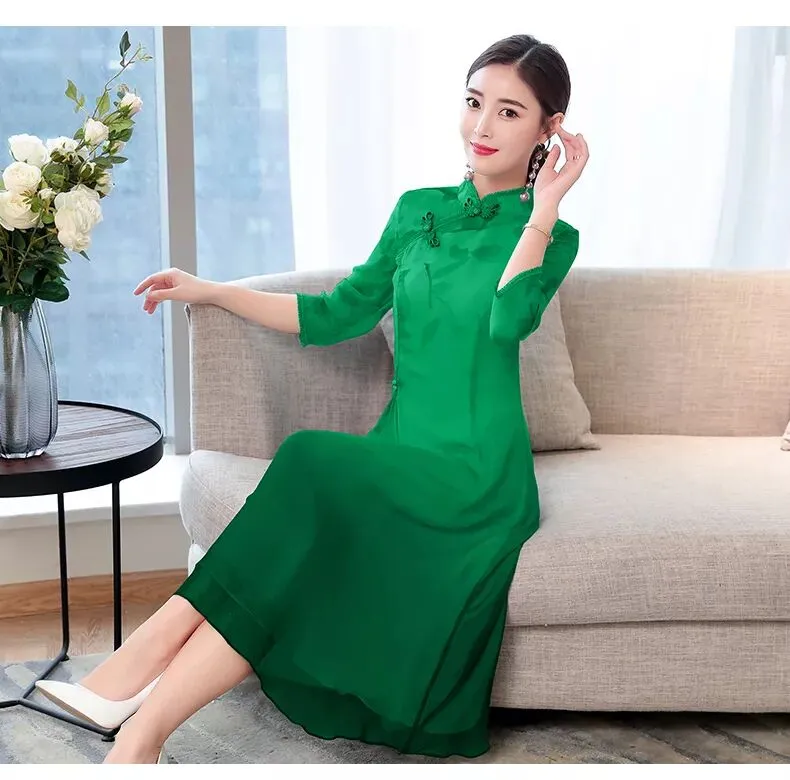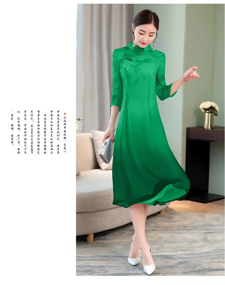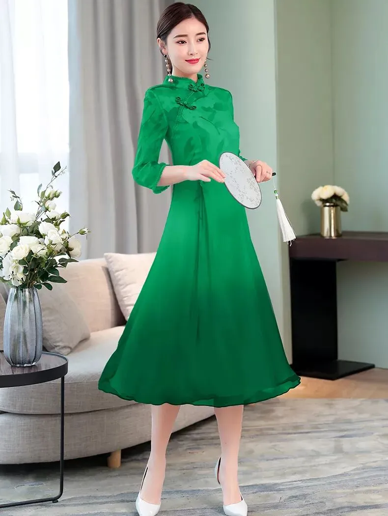 复古宽松大摆优雅女旗袍连衣裙