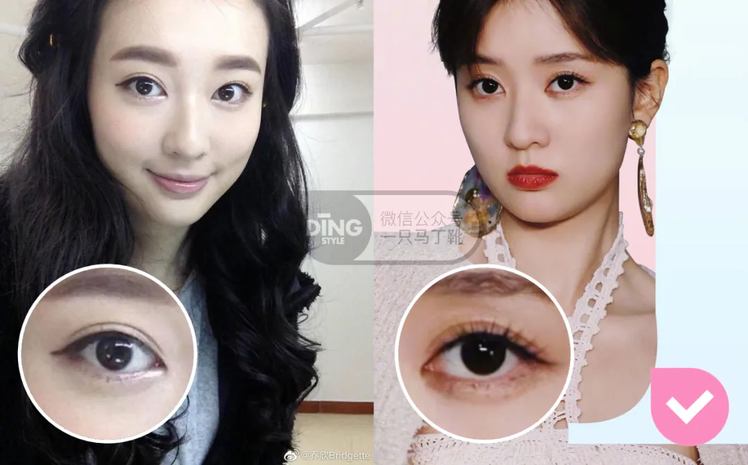 ▲ 左边眼线太粗反而会显双眼皮窄。
