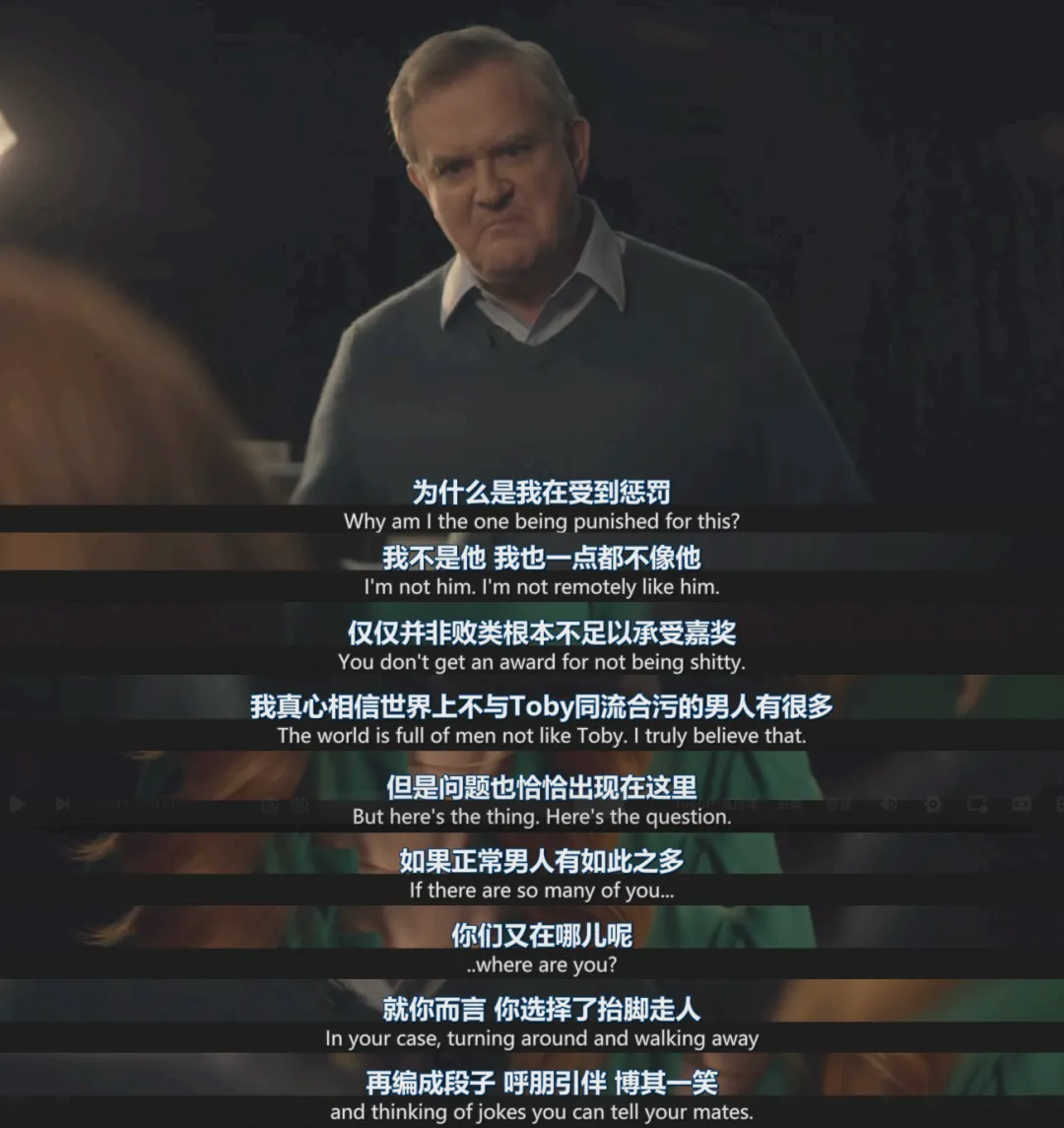 英剧经典的以小见大、节奏感快,一步步剥丝抽茧,最终恍然大悟之感,展现父权社会下的男性同盟是如何默声运作,是我们每个人心里默认存在但难以言说,甚至难以言喻的。