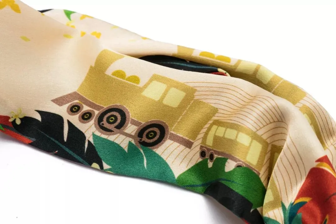无论是触感还是质感,都是真丝产品中的高端之作。在真丝面料的映衬下,插画中的每一笔色彩都更明亮饱满。