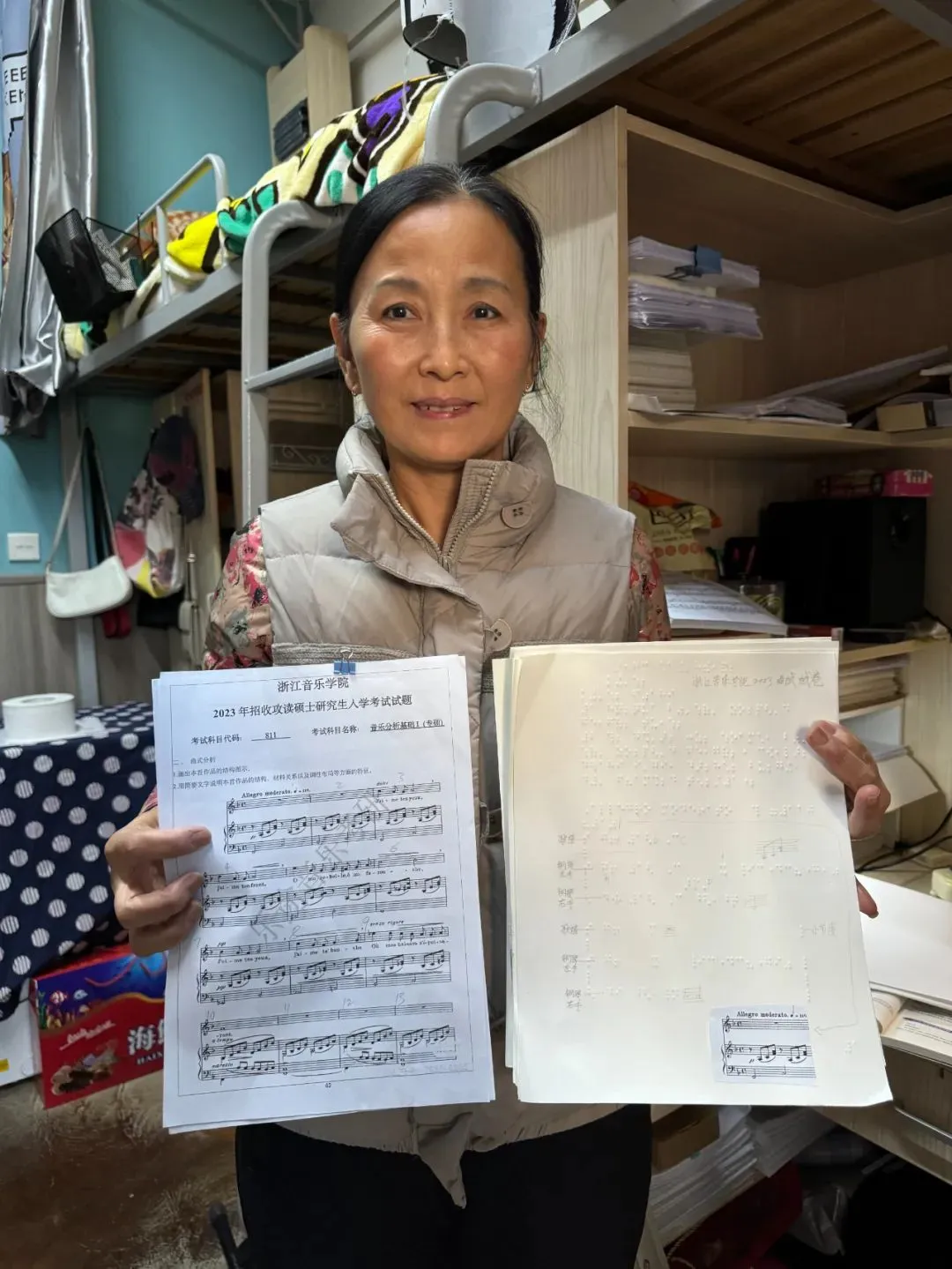 母女俩宿舍里有一台盲文专用打字机,是王伟专程跑到北京订购的。上大学以后,王怡文学习用的课本、乐谱基本都是妈妈翻译并制作成盲文版本的。