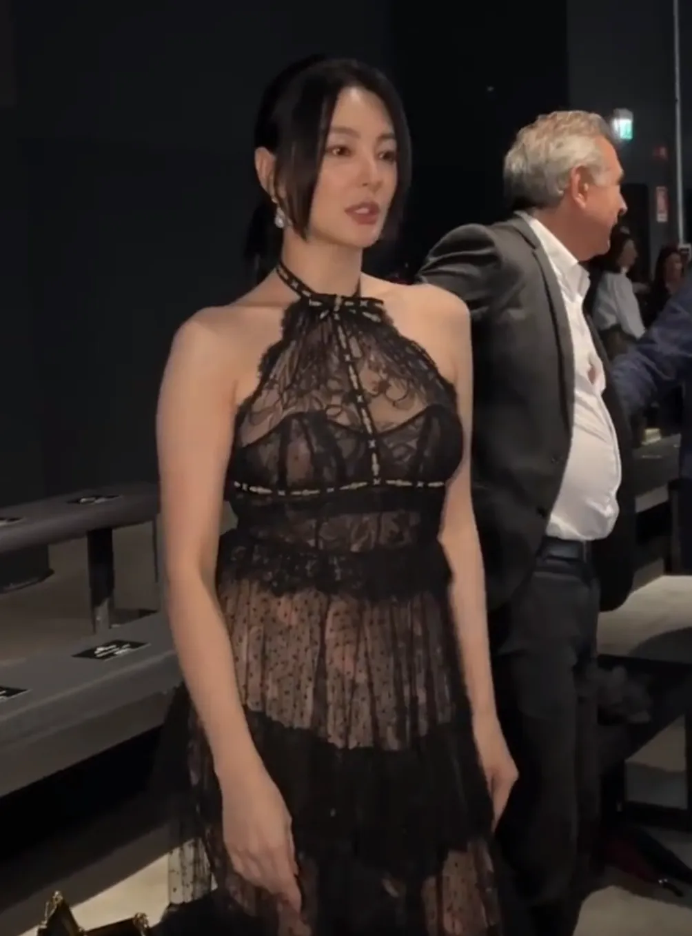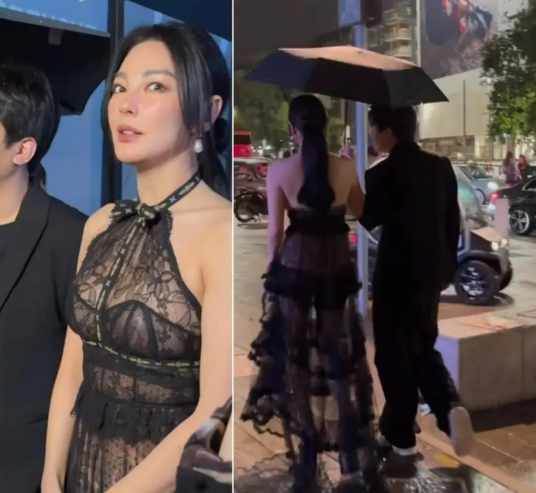 张雨绮的黑色蕾丝长裙造型,既大胆又大方。搭配恨天高高跟鞋,看起来又高又瘦,同时又能凸显身材优势,很适合御姐型的她。