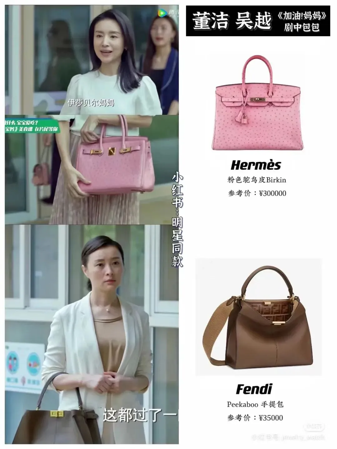 而剧中的董洁,一个丈夫是医生的全职妈妈,30w+的爱马仕说背就背,反而作为律所合伙人的吴越,只背3w5的Fendi,确实不太合理。