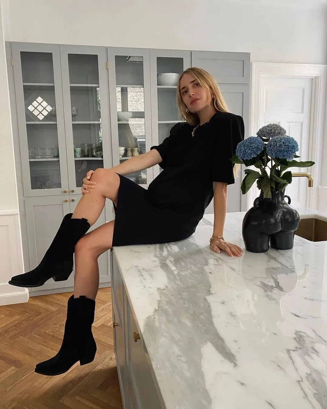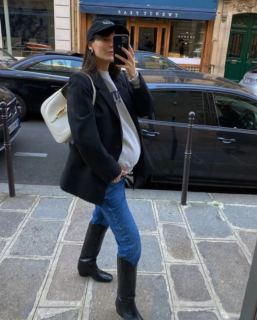 搭上靴子就很好看。去年流行的粗筒工装靴牛仔靴或者切尔西靴也别急着收起来,它们其实对孕期腿部、足部水肿还是很友好的,并且比起高跟鞋更加安全,也很好搭配。