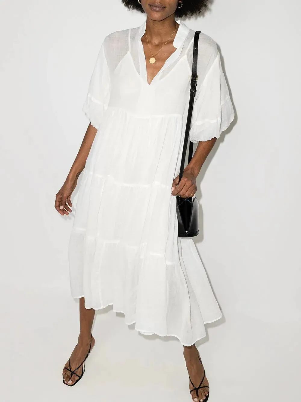 叠层伞形中长连衣裙