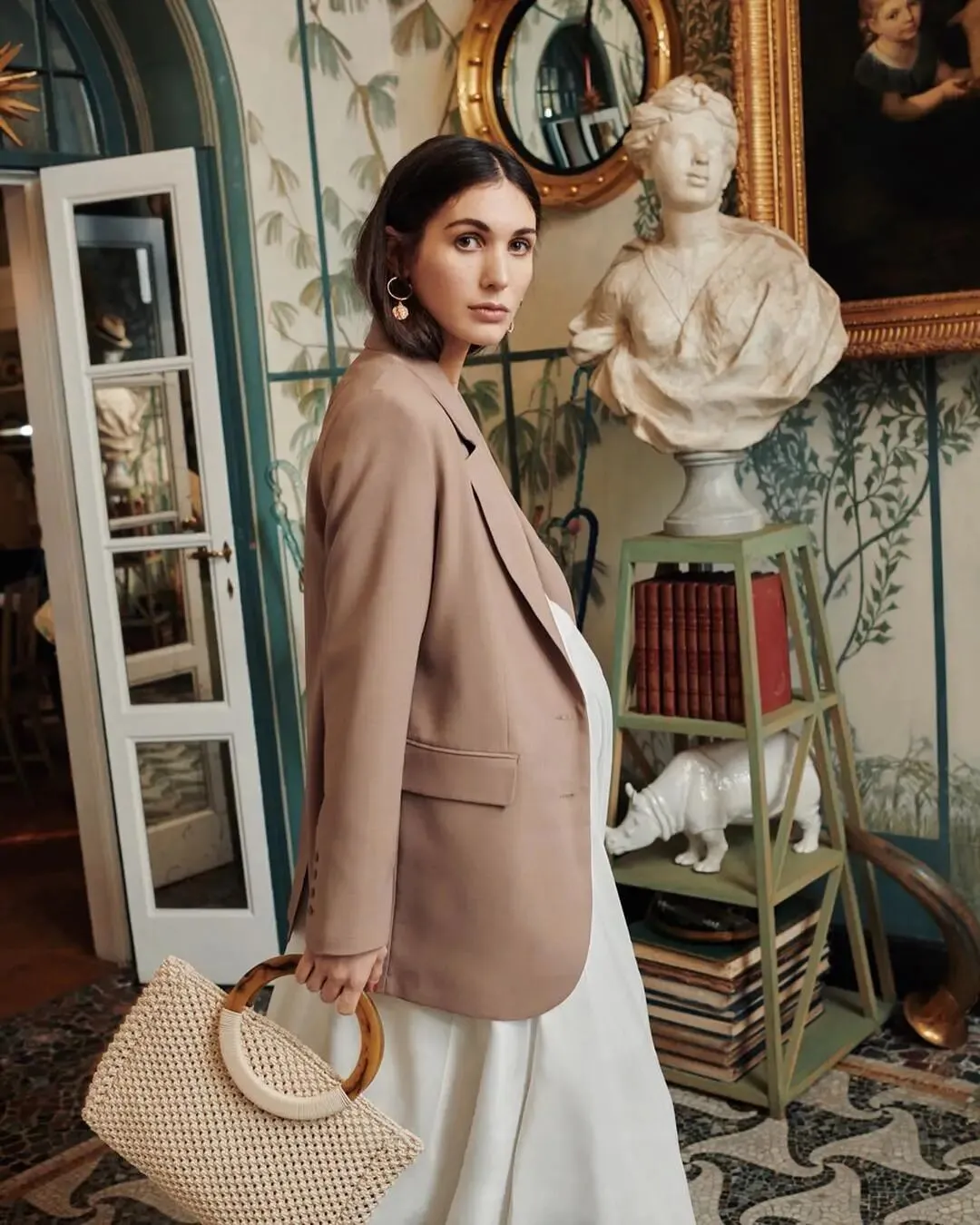 那意大利时尚博主Diletta Bonaiuti的孕期造型也很有参考价值,其中西装是不可或缺的,保证了造型的利落线条,看起来就很有精气神。