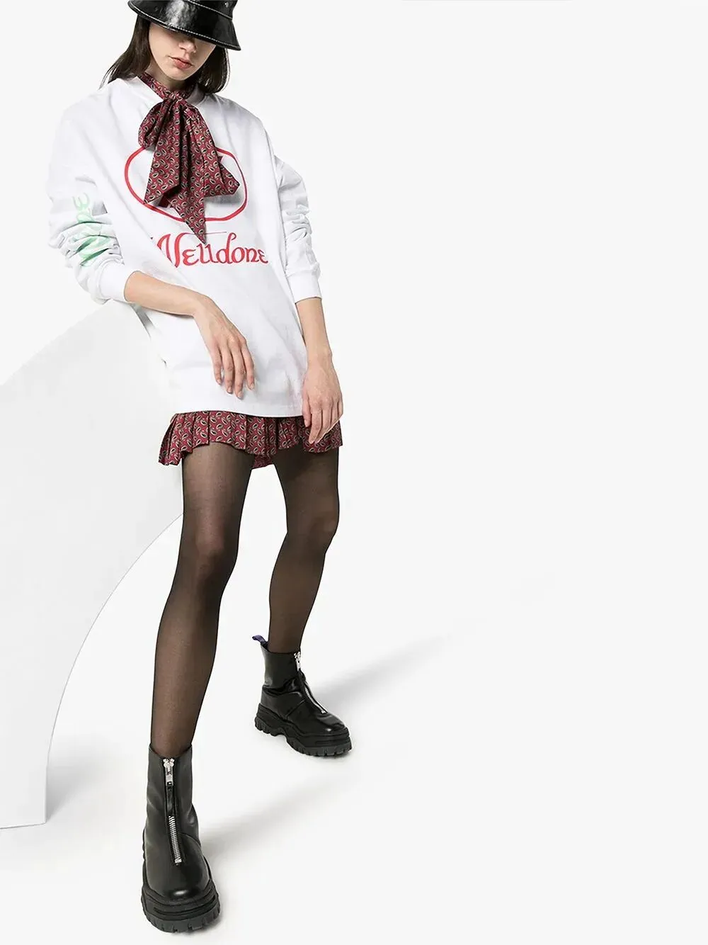 除了常规配色还可以选择潮牌印花的卫衣,用外套和配饰进行大胆撞色,很难不成为焦点。