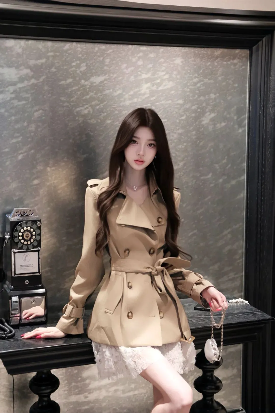 当前位置:首页>美女资讯>卡其色风衣+蕾丝裙,优雅魅力