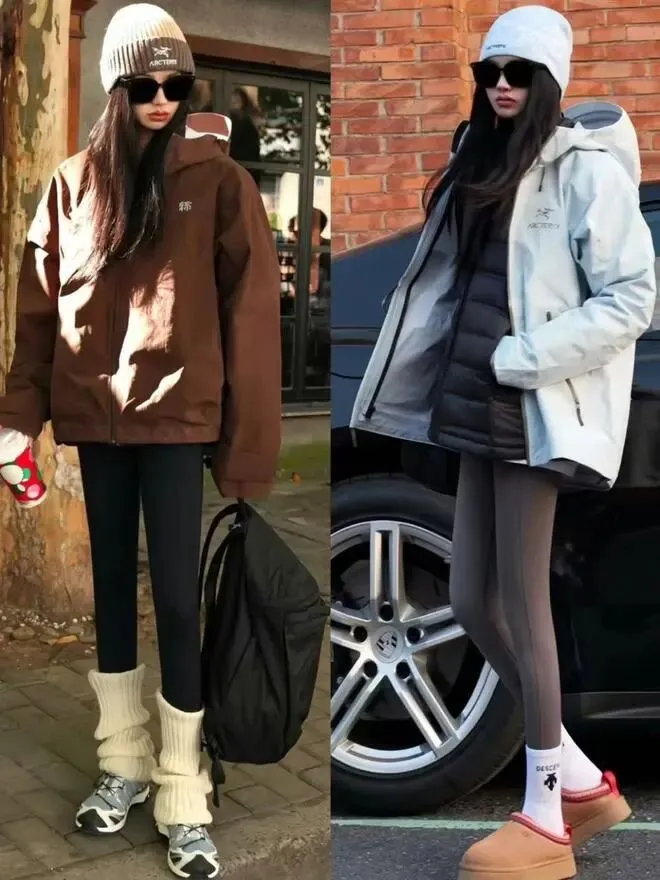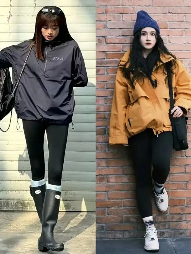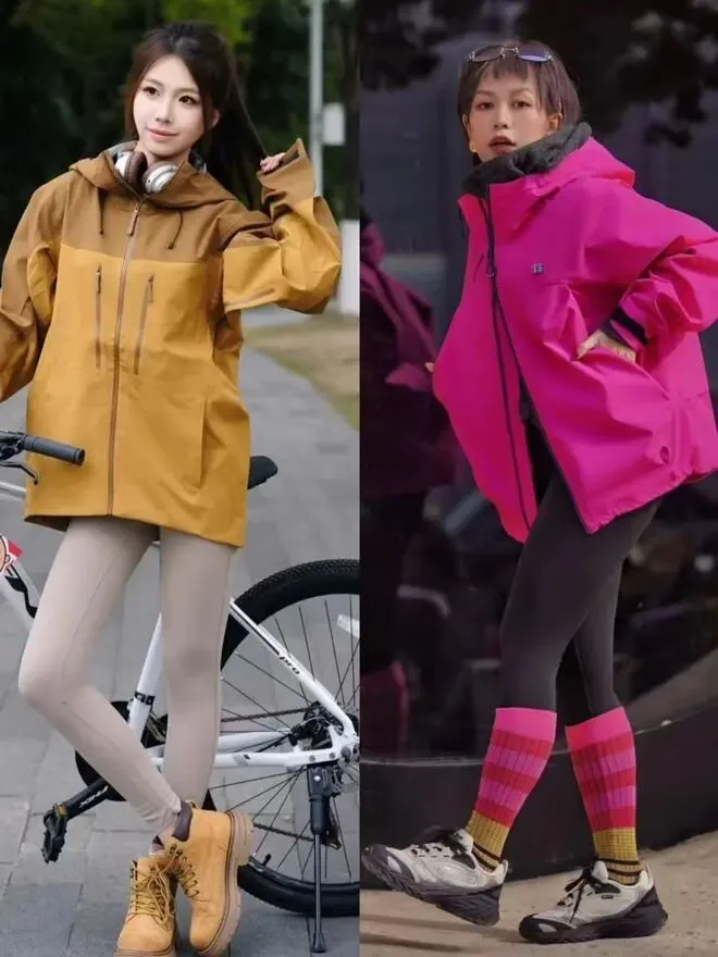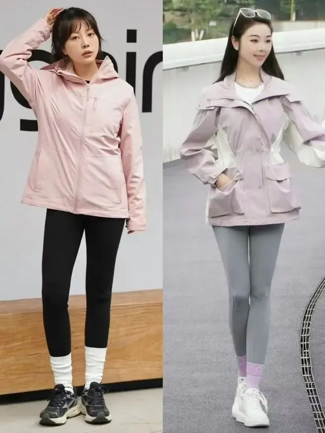 同色系的配色,适用于各个场合,并且节省了很多搭配上的时间。例如,选择黑色冲锋衣和黑色瑜伽裤的搭配组合,可以展现出内敛大气、稳重而不失错落有致的风格。然而,如果过度使用黑色,可能会显得有些沉闷和老气横秋。可以在内搭或者是袜子上运用白色,提升层次感。