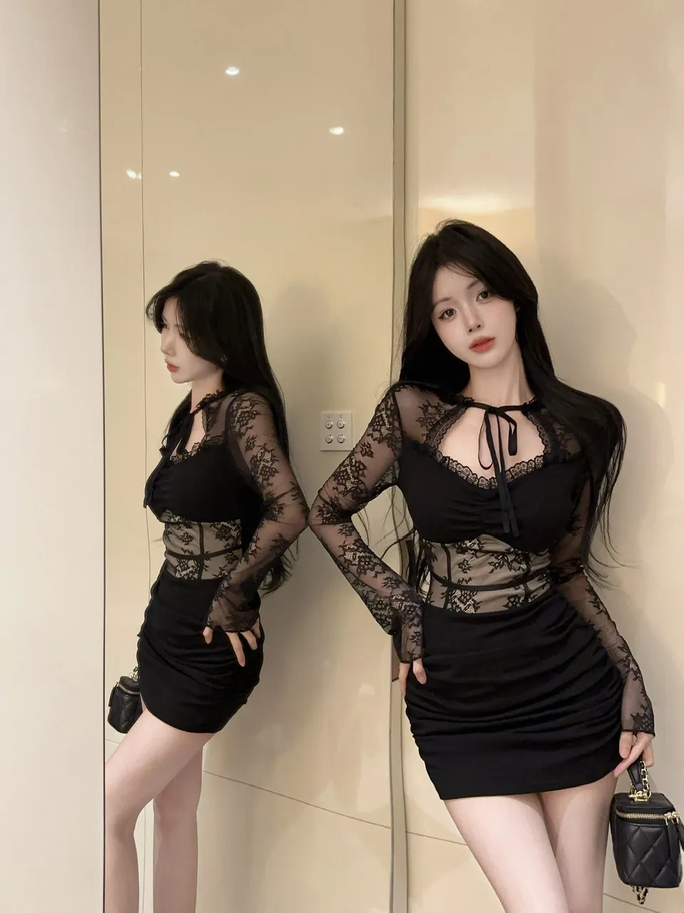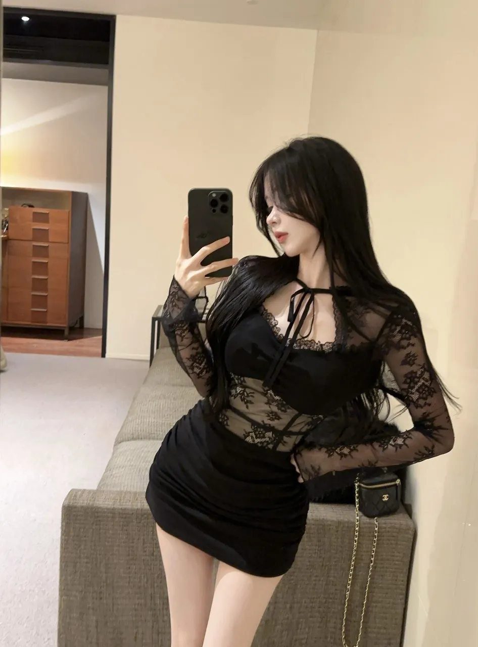 #美女穿搭# #黑色系穿搭# #蕾丝元素# #氛围感穿搭# #约会穿搭#