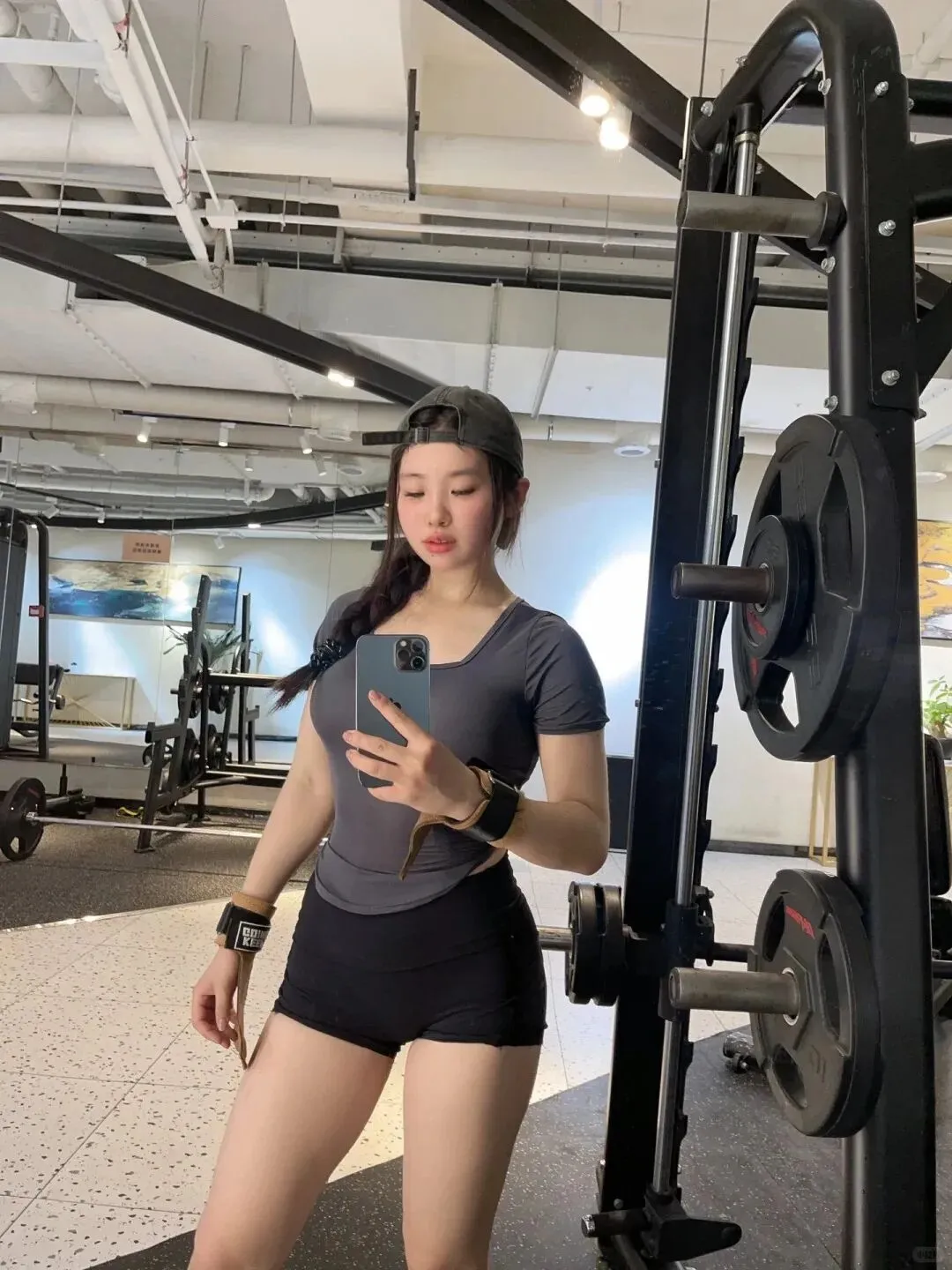 一个穿着灰色瑜伽裤的女生在做深蹲,她不是最漂亮的那一个,却让人忍不住多看两眼。