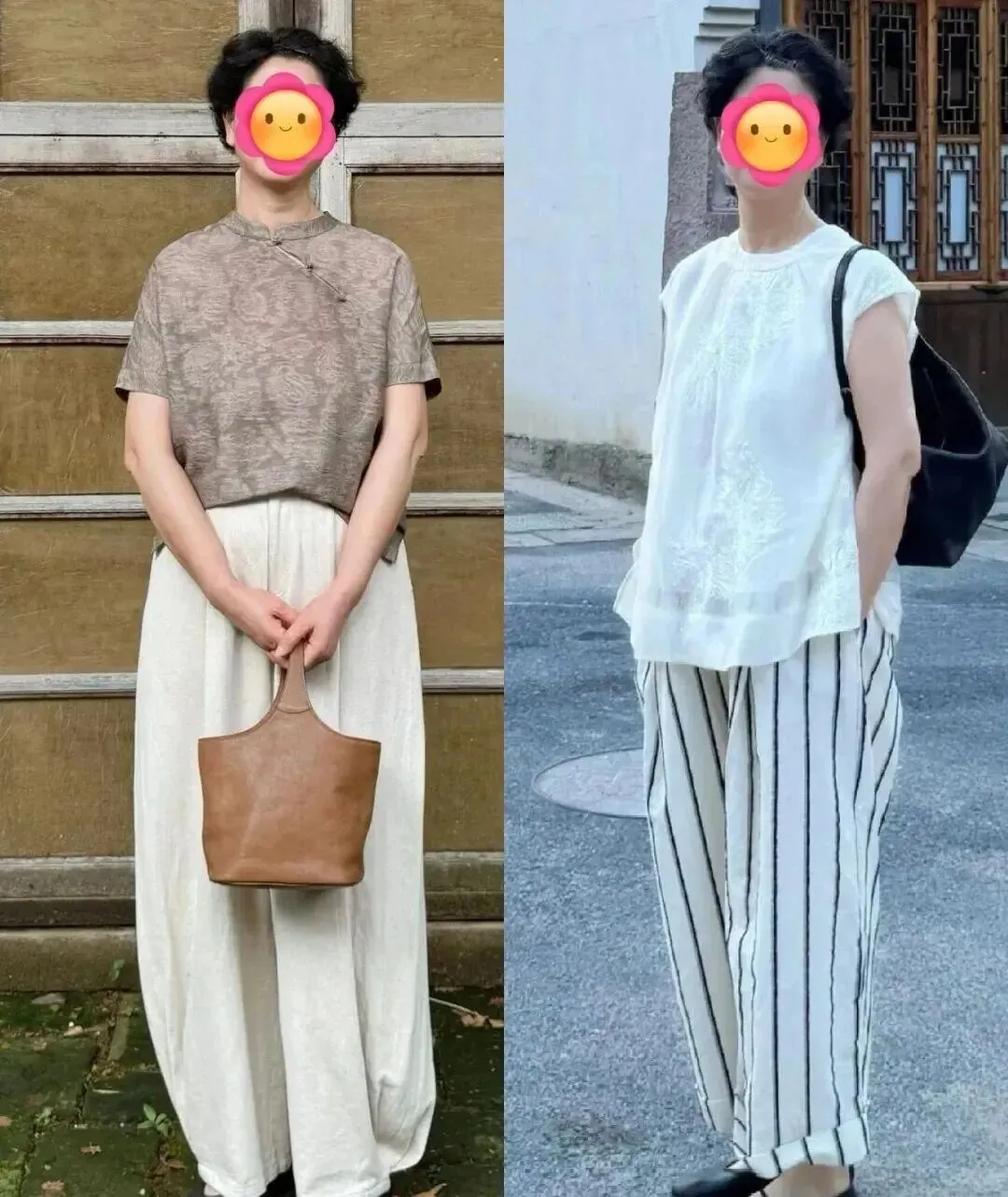 • 法式温柔:亚麻背心+萝卜裤(适合对穿搭有点审美要求但不爱复杂搭配的人)