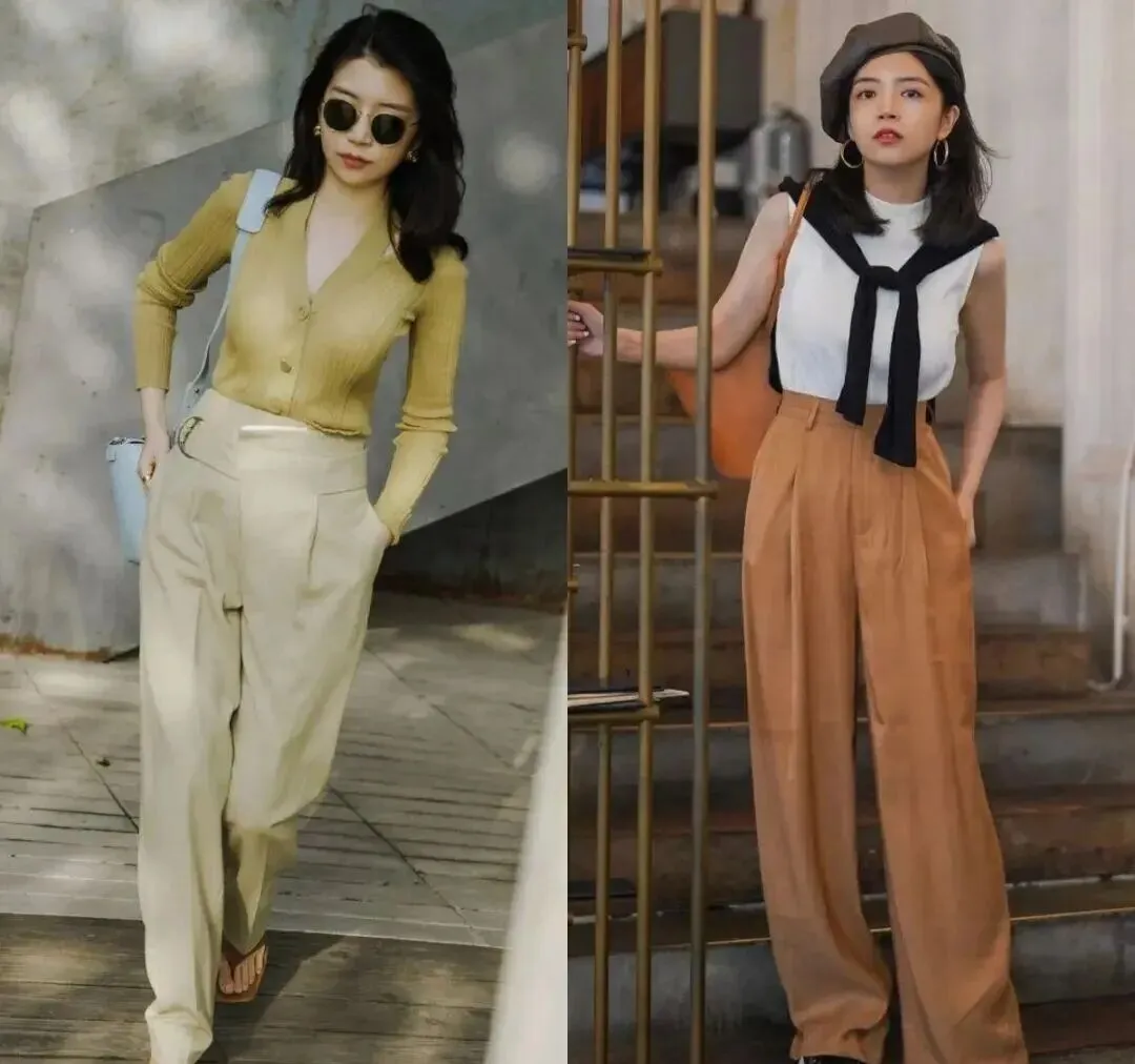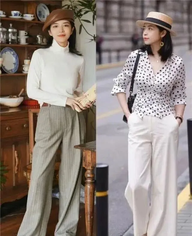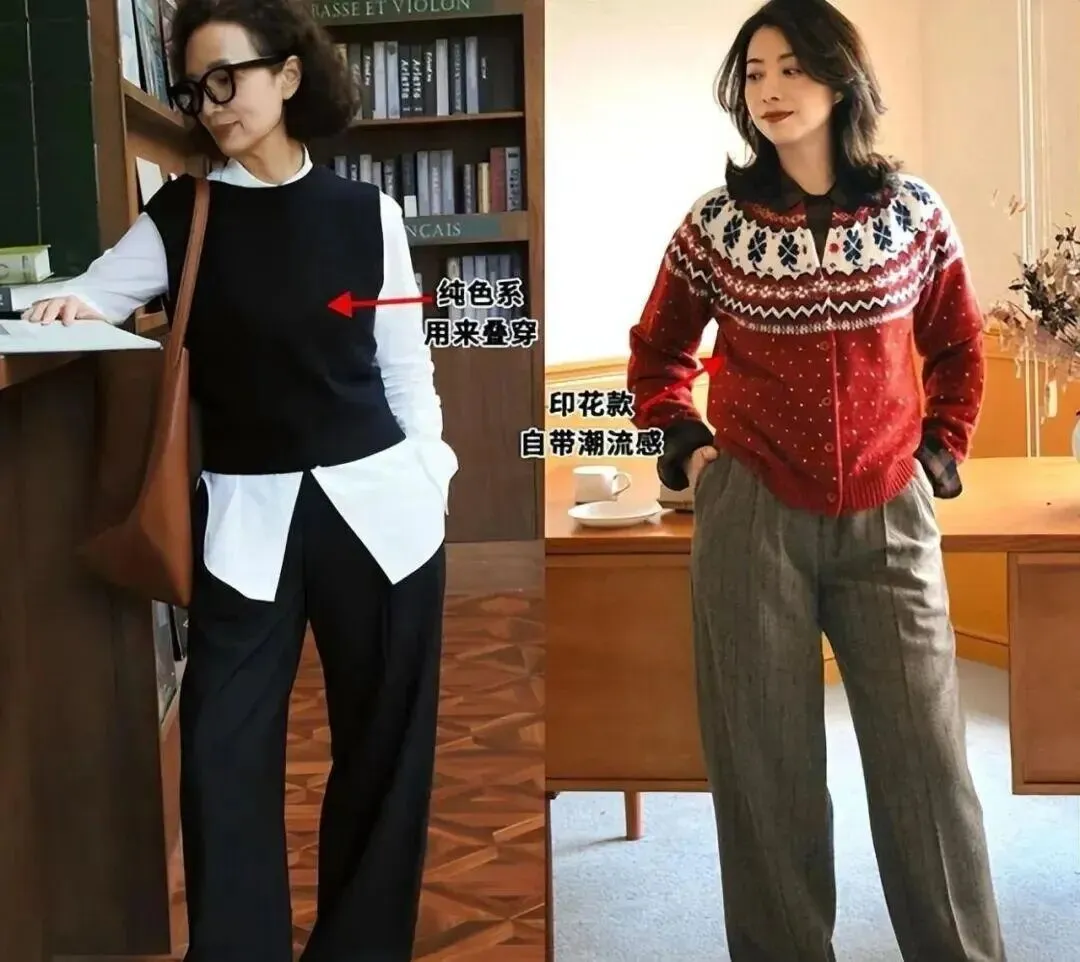 • 休闲风:针织开衫+阔腿裤(适合微胖身材、注重舒适度的人)