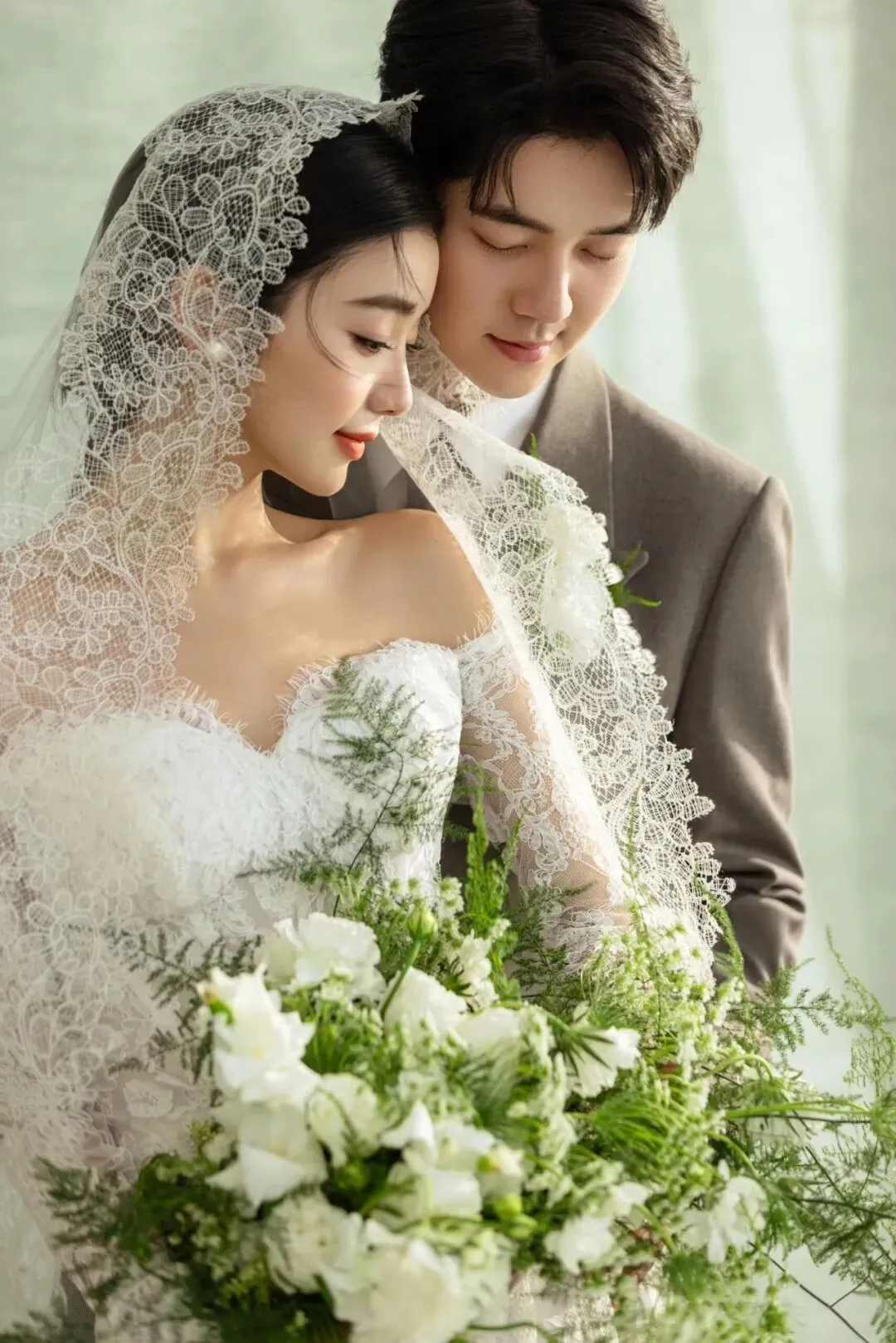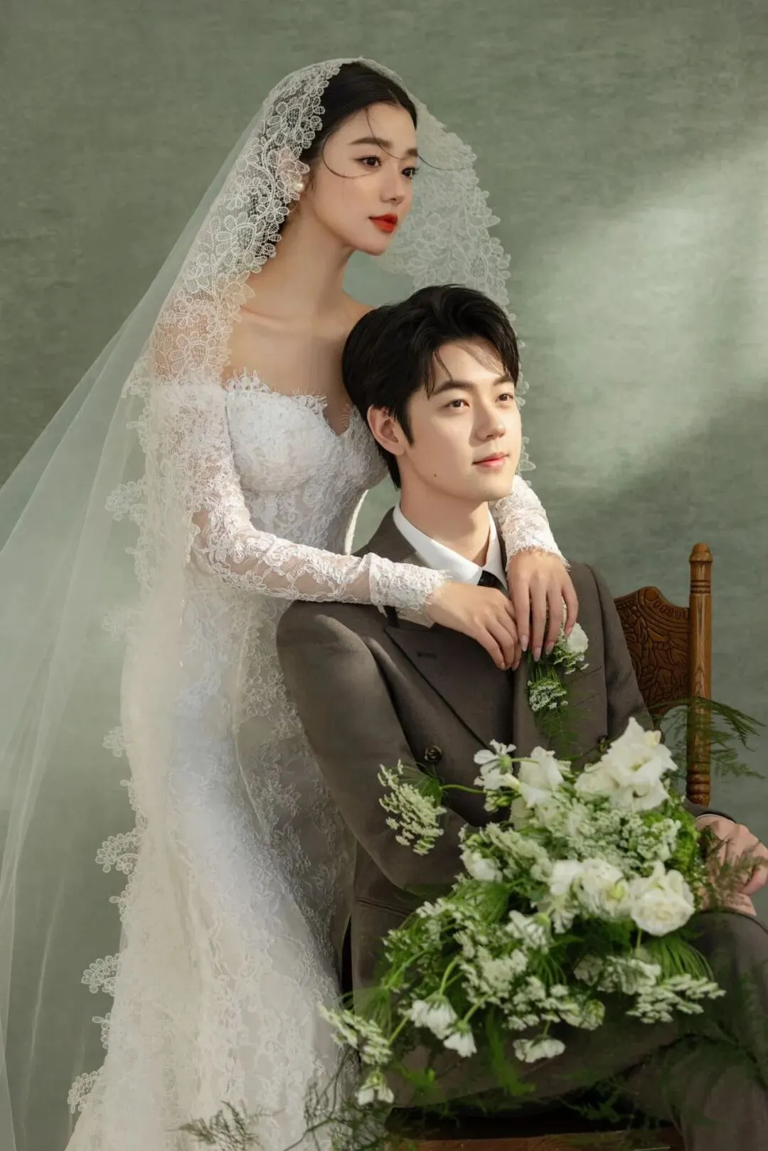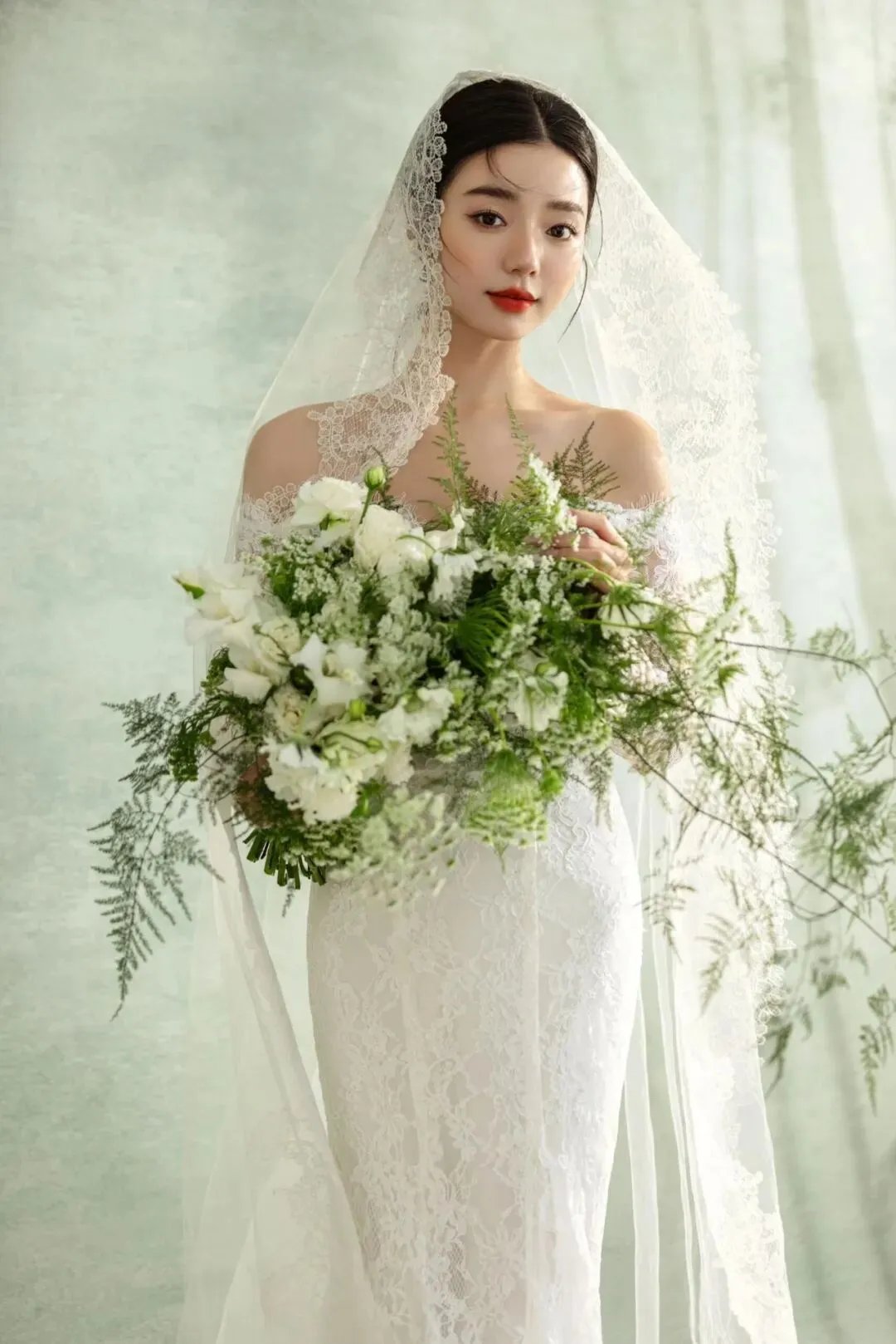 当前位置:首页>美女资讯>低饱和复古绿背景太有质感了,蕾丝婚纱像月光织的纱,是能珍藏很多年的浪漫模样