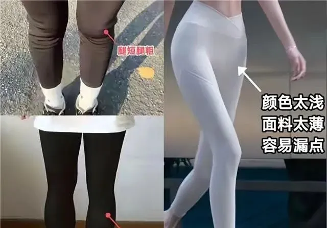 但瑜伽裤它不管这些啊 , 紧紧地贴着你 , 腿短的更短 , 腿粗的更粗 , 腿型不直的全暴露 , 本来穿别的裤子还能藏一藏 , 这下好了 , 一览无余。