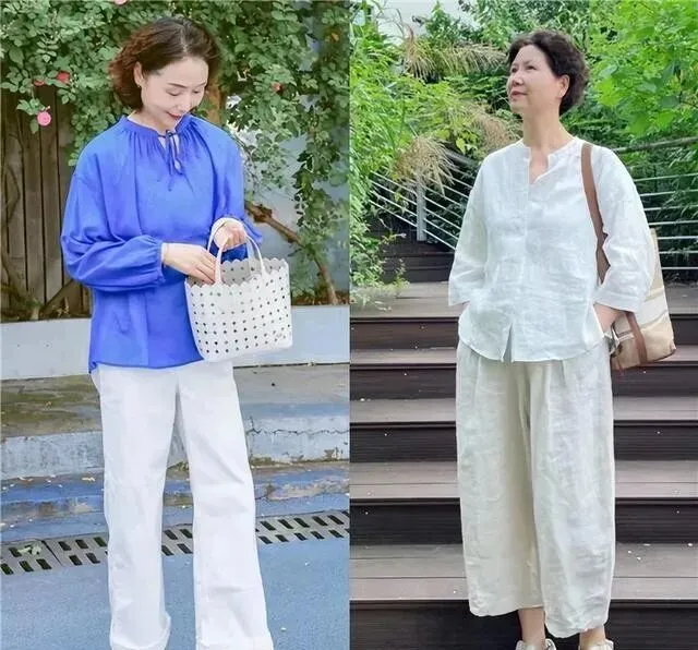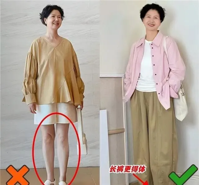 短裤会暴露腿部肌肉线条 , 还有皮肤松弛的问题 , 长裤直接遮住 , 露个脚踝就刚刚好 , 显瘦还清爽。