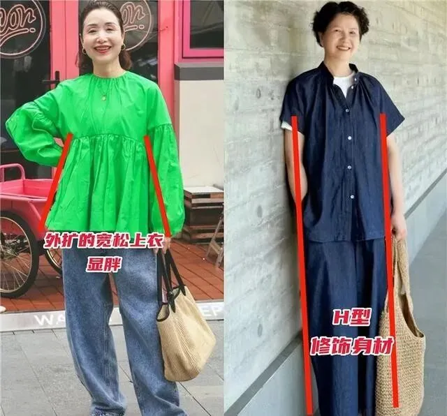 上衣和裤子都宽松的话 , 整个人会显得膨胀 , 没精神。