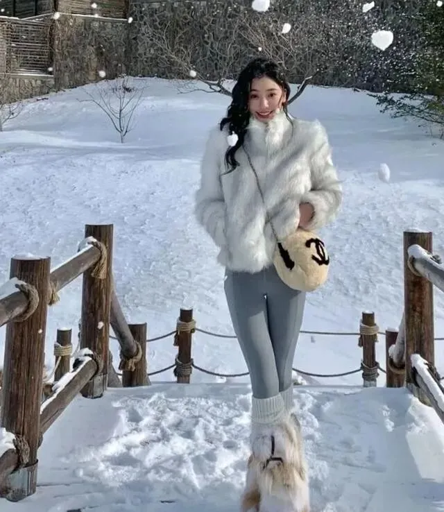 想要时髦洋气的 , 皮草+瑜伽裤+冬靴 , 这一套下来又暖又有气场。