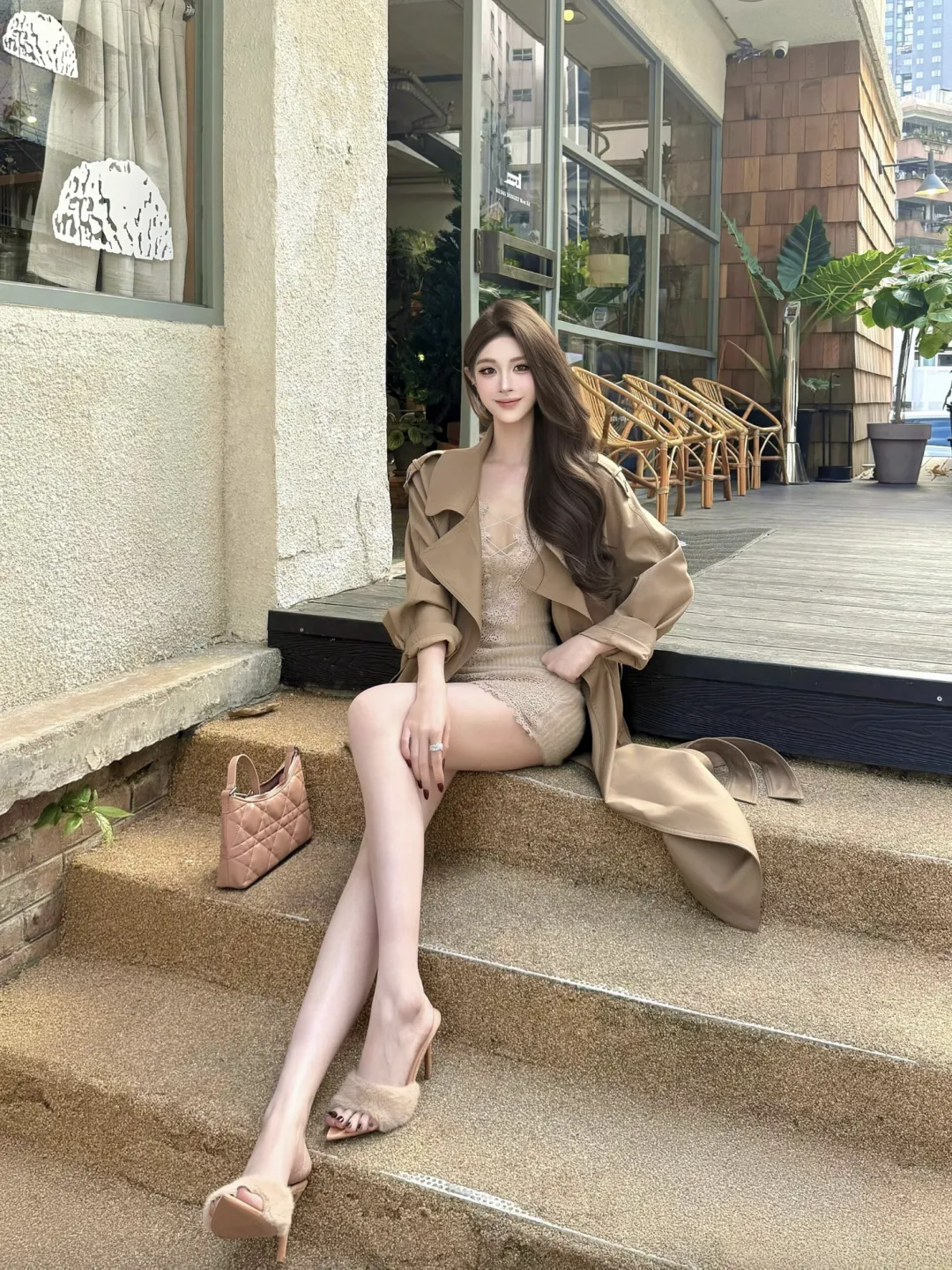 当前位置:首页>美女资讯>“卡其风衣 + 蕾丝裙”,搭毛绒高跟鞋后,真的太绝了!