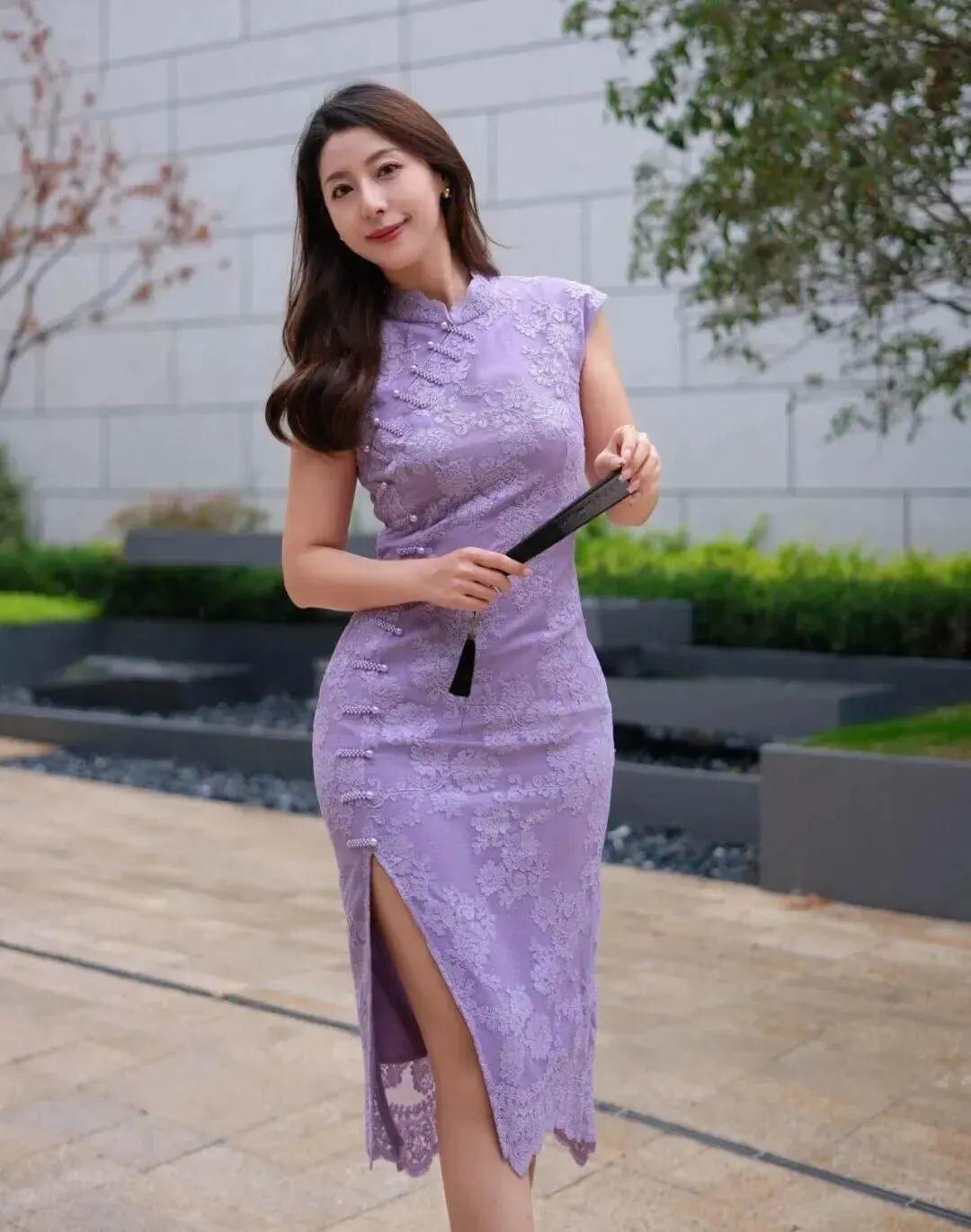 当前位置:首页>美女资讯>紫色蕾丝旗袍+浅口平底鞋,温柔又有东方氛围感!