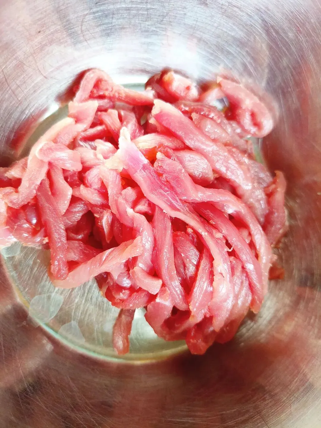 4. 肉丝要想好切,提前放冰箱冻一下,顺着肉纹切,如果逆纹切,腌制或者炒制时肉丝易断易碎。
