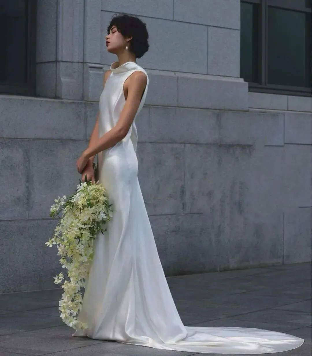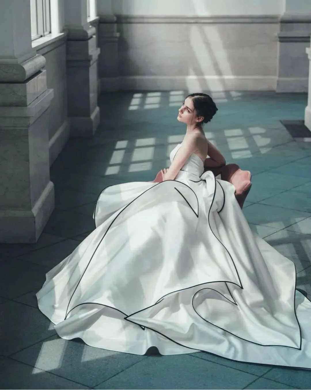 白色具有轻微的膨胀感,这使得礼服的轮廓和剪裁被极度强调。无论是鱼尾裙的性感曲线、A字裙的优雅弧度,还是蓬蓬裙的戏剧性体积,都在白色的诠释下显得无比清晰和充满力量。年轻女子光洁的额头、精致的发丝,不需任何多余的“语言”,如同一缕清风吹来,舒适遐想。