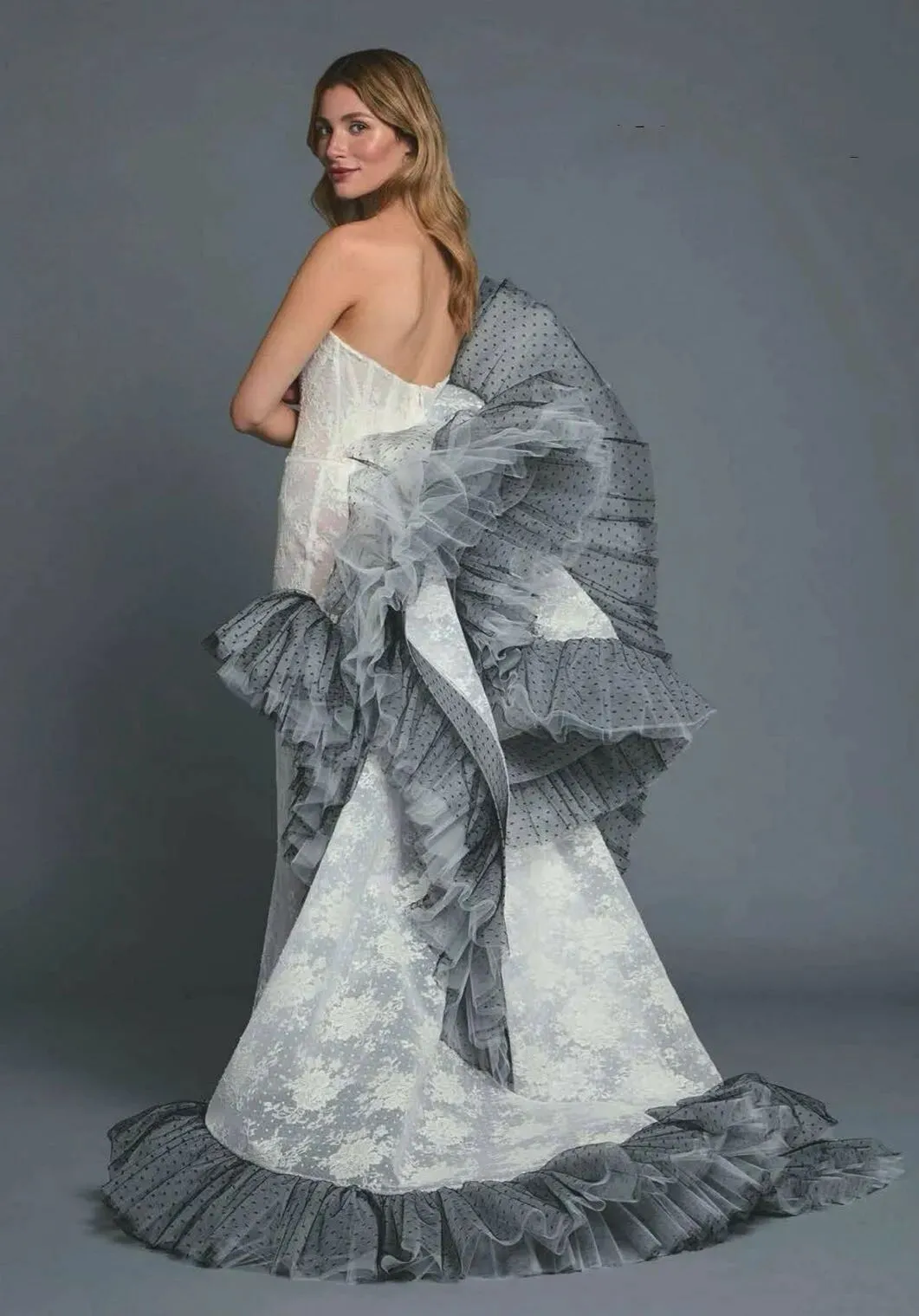层层叠叠的欧根纱或雪纺,创造出空气感和朦胧美。光线在无数层薄纱间折射、散射,形成如云雾、如泡沫般的梦幻视觉效果,轻盈而浪漫。