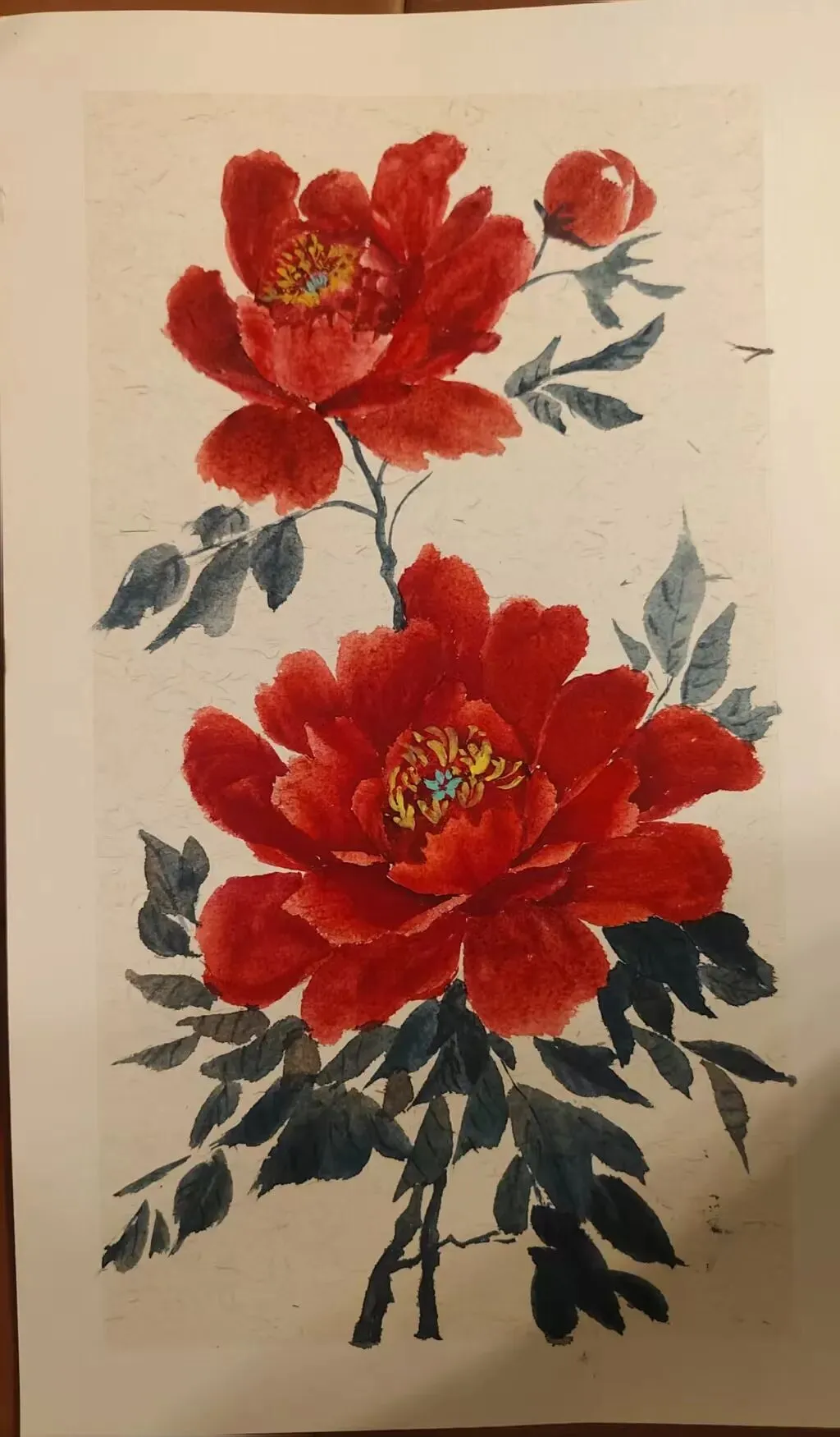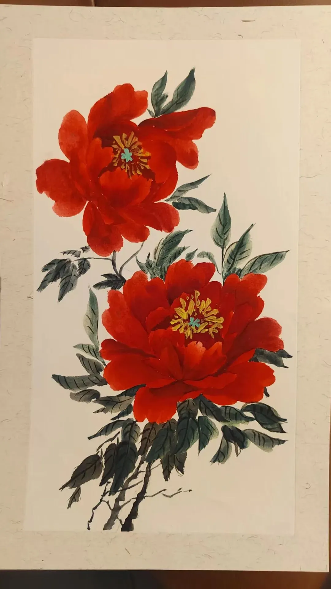 整整一年,纸笔颜料都在角落安静躺着。今天早上,毫无预兆地,就是特别想画牡丹。于是,一切又重新开始。